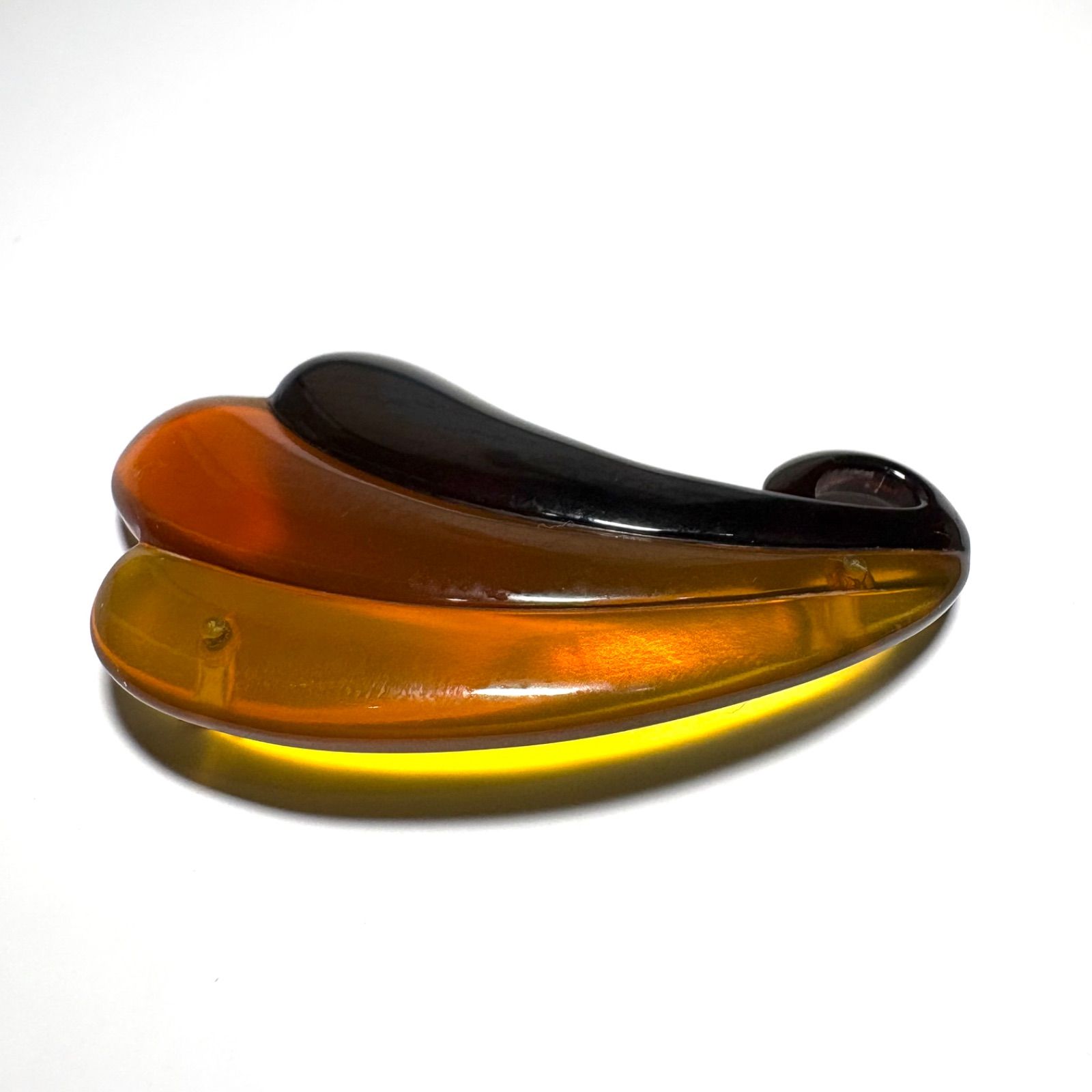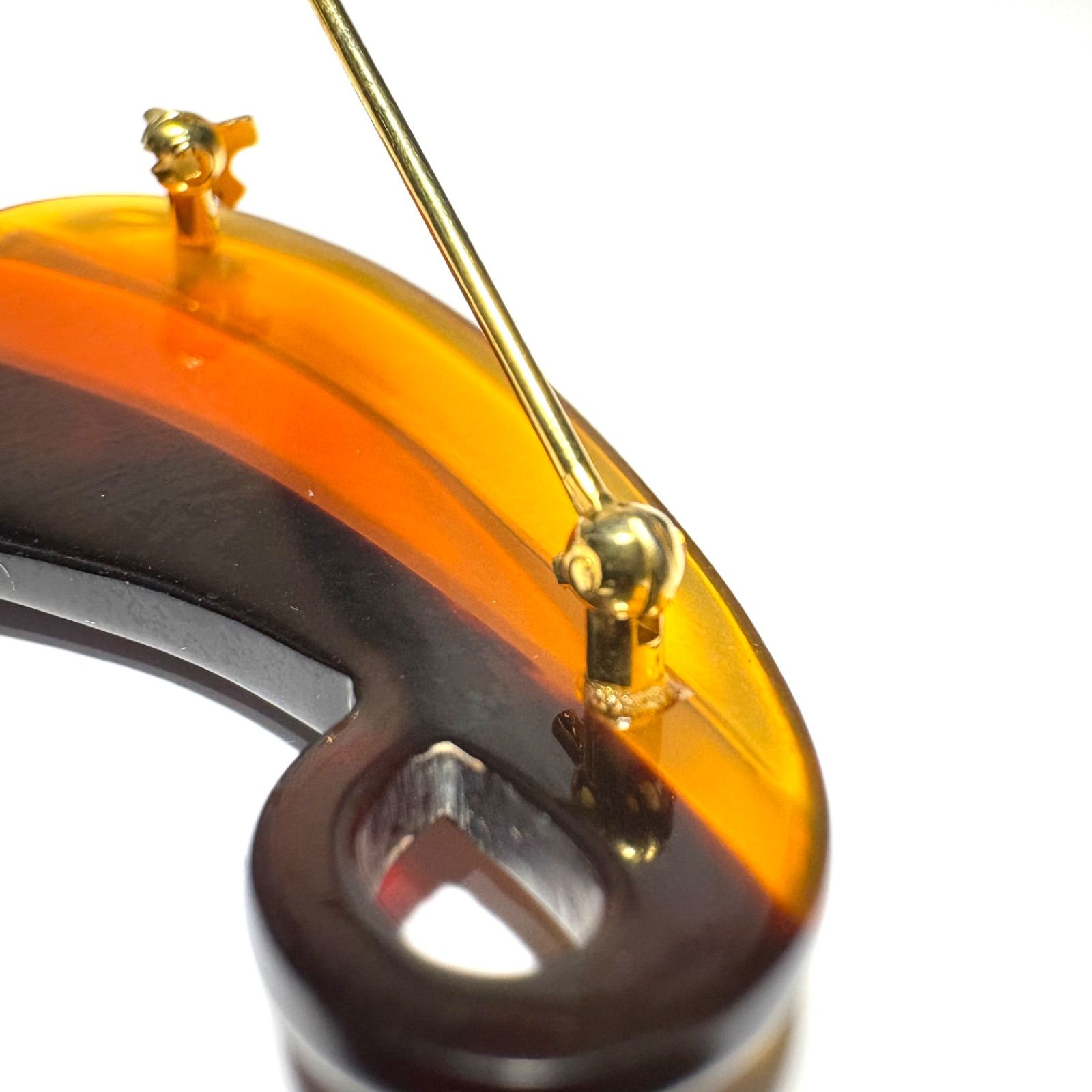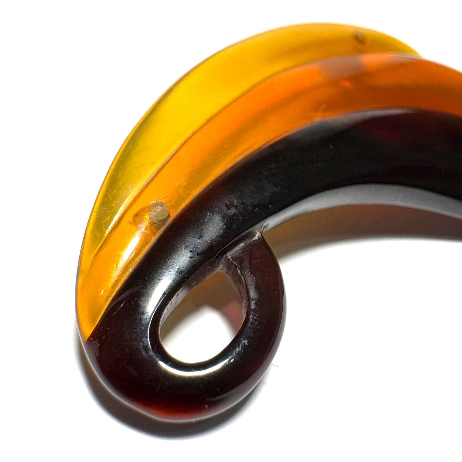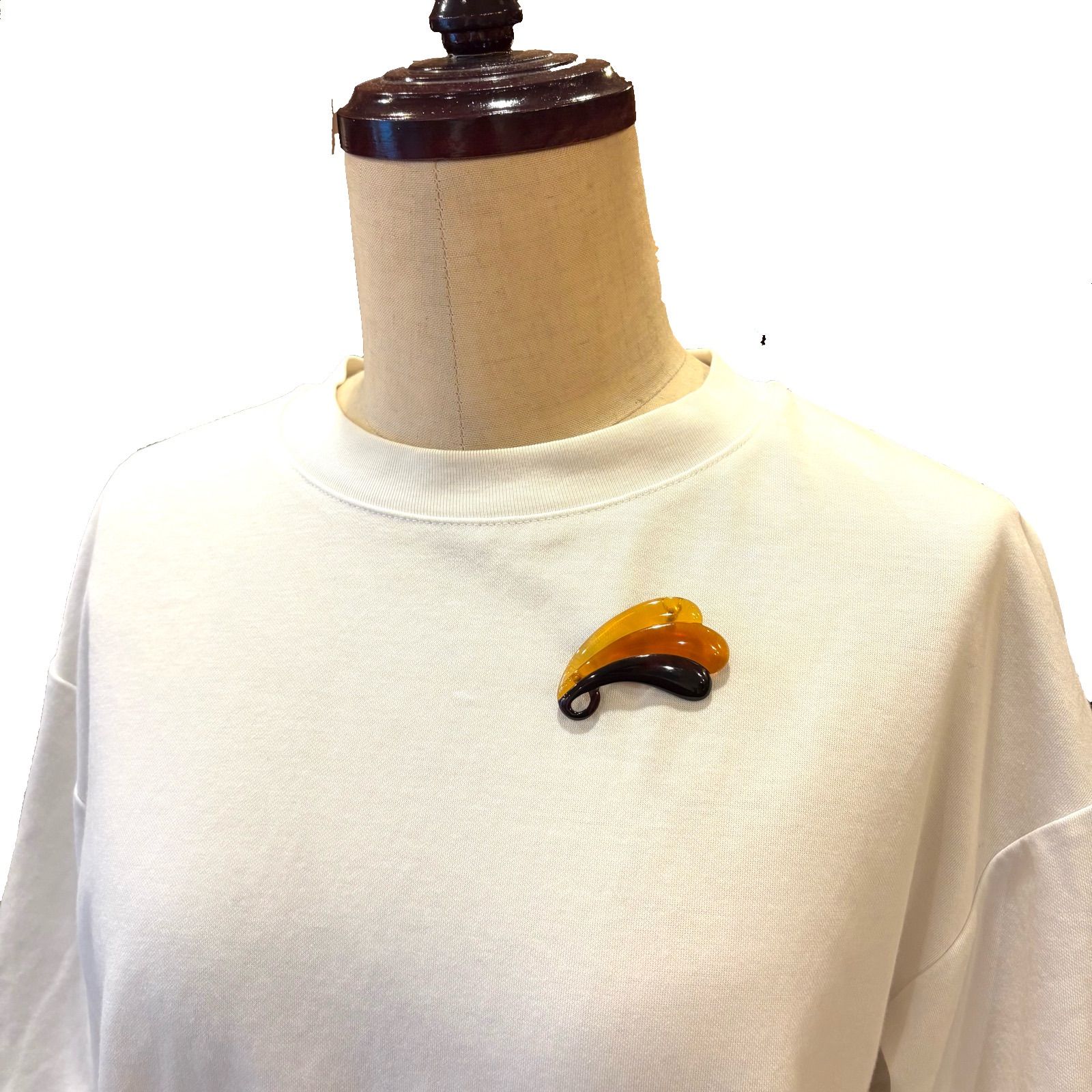 本鼈甲トリコロールカラー・エレガント曲線ブローチ 5.3cm**