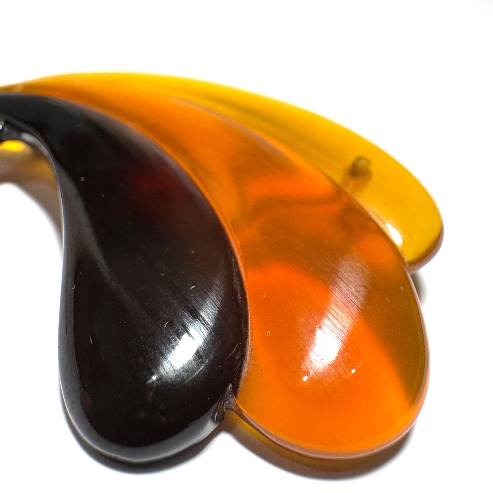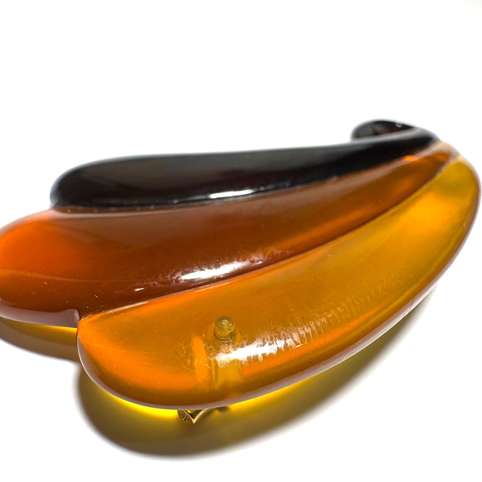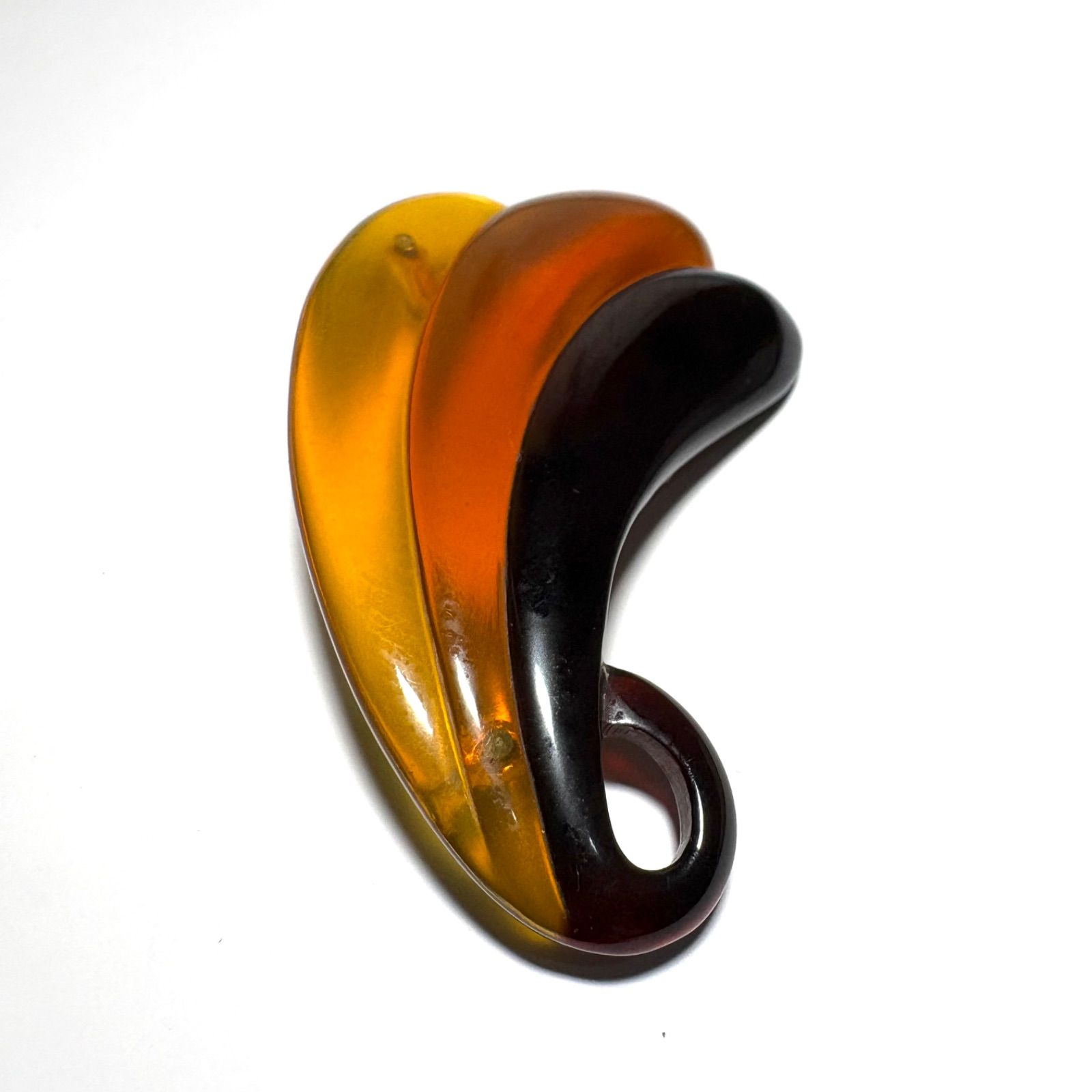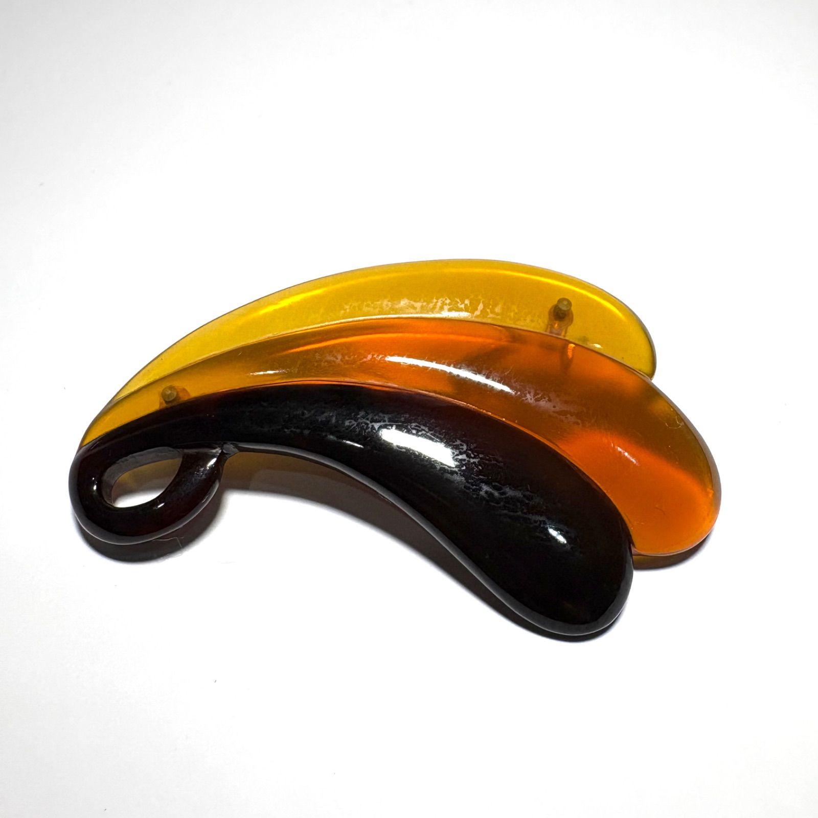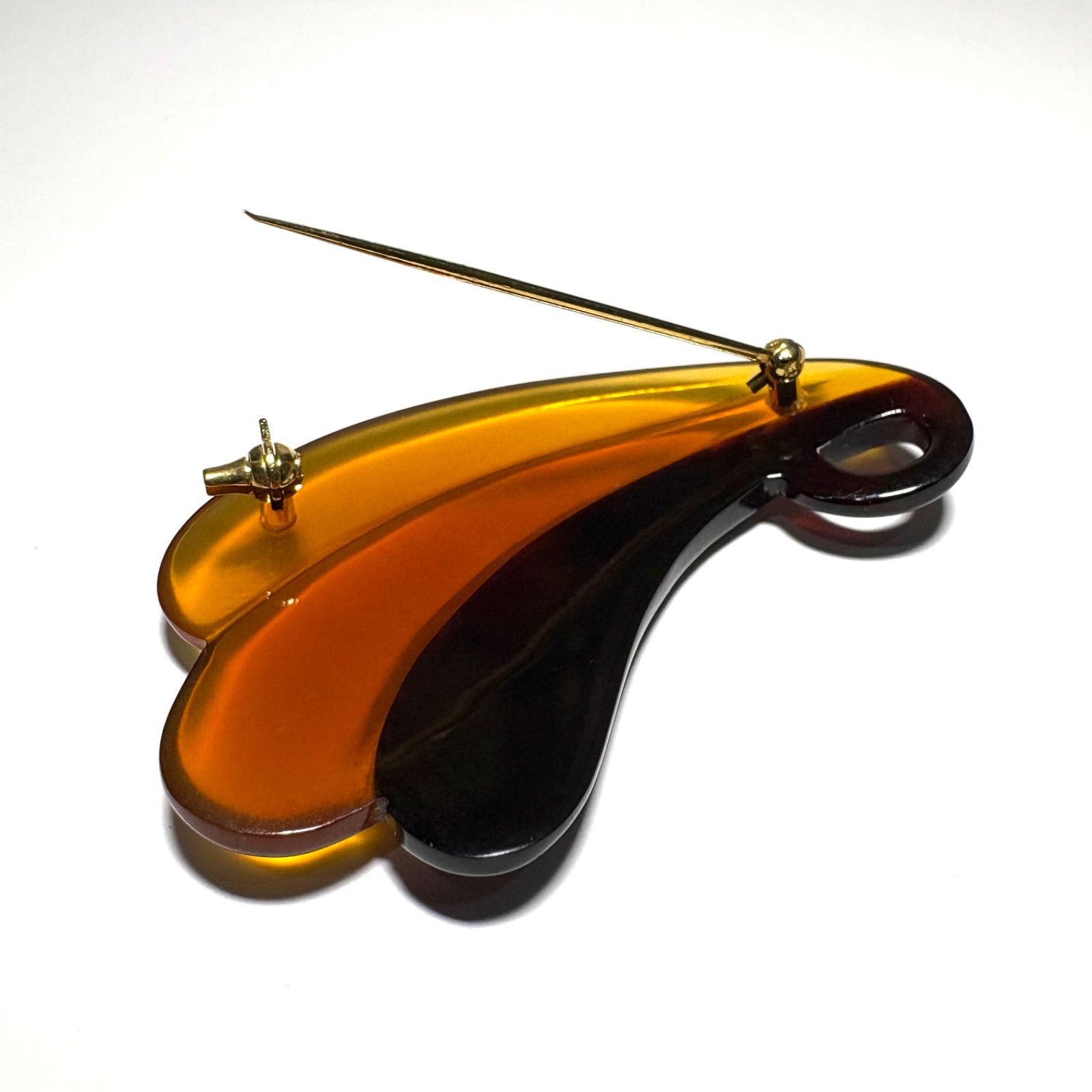 本鼈甲トリコロールカラー・エレガント曲線ブローチ 5.3cm**