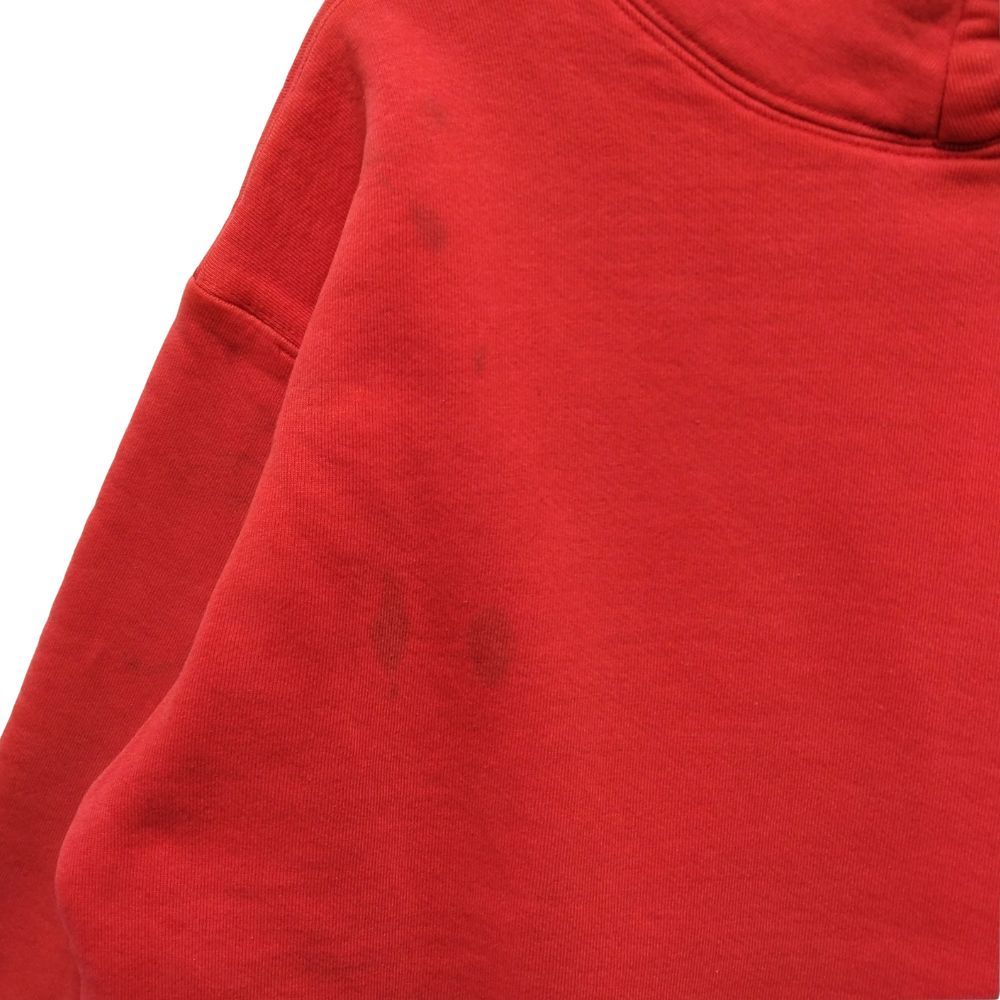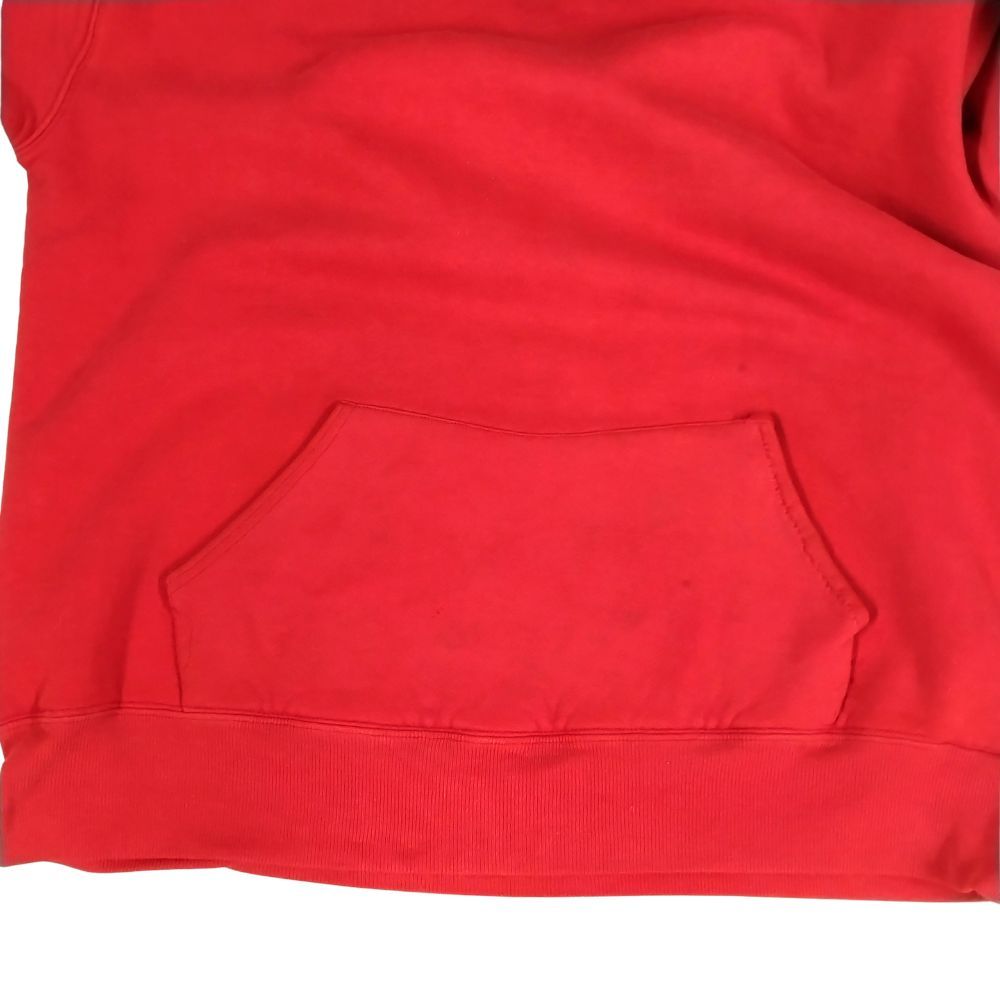 ユーズド品で着用感あり、フード内に毛羽立ち、毛玉あり、フード口周りに色あせあり、毛羽立ち、毛玉あり、右肩縫い目ほつれ外れ箇所あり、カンガルーポケットに汚れあり、ほつれ外れ、縫い付け直しあり、両袖に汚れ箇所あり、袖リブに汚れ、リブ内に毛羽立ち、毛玉があります。