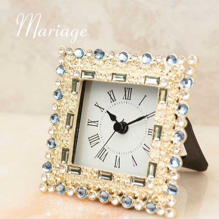 Mariage マリアージュ テーブルクロック(ゴールドブルースクエア)♪