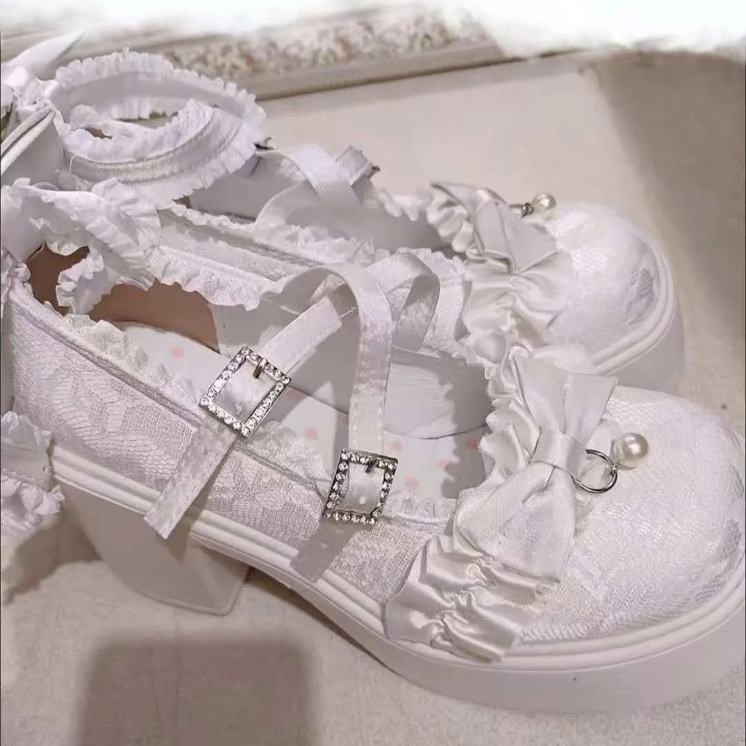 lolita女子レディースフォーマルシューズ JKゴスロリロリータロリ系 プリンセス発表会結婚式卒業式入学式 shoes コスプレ靴 洋服靴 かわいいロリータ靴ラウンドトゥ太いハイヒール コスプレ靴