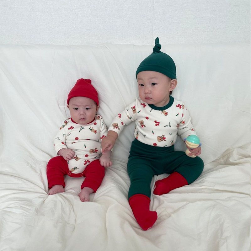 ホリデーシーズンの装いにぴったりなベビーロンパース。