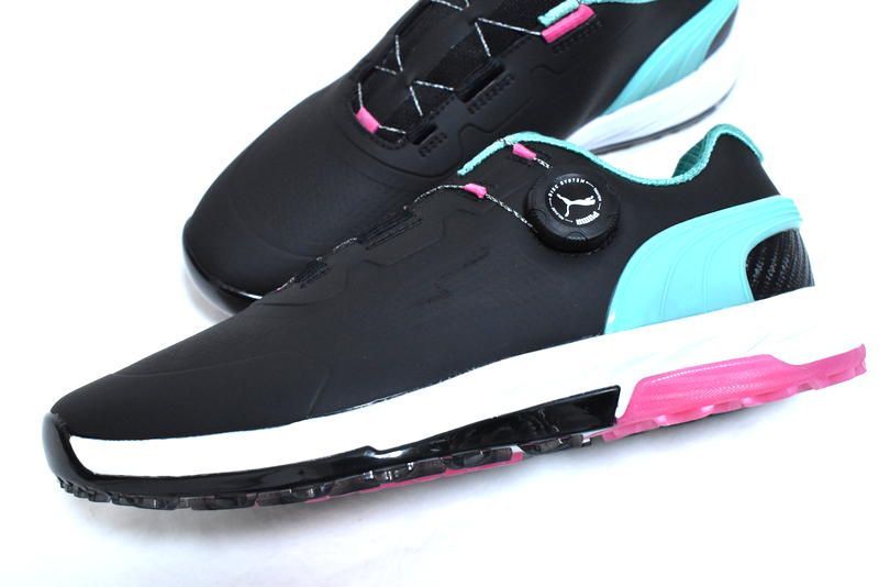 メッシュ素材にTPUコーティング加工を施して防水性と快適な履き心地を両立させたアッパー、着脱のしやすさと最高のフィット感を提供するDISCクロージャーシステム、優れたグリップ力で安定したスイングをサポートする異素材複合ソール、かかとのブレを抑えてスムーズな体重移動に導くヒールカウンターデザインなど、圧倒的な快適性とパフォーマンスを兼ね備えたスパイクレスモデルです。