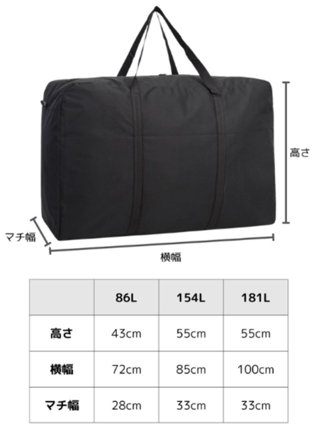 ボストンバッグ 【選べる容量86L-181L】 大容量 大型バッグ 大きいバッグ 旅行カバン (ブラック 86L)