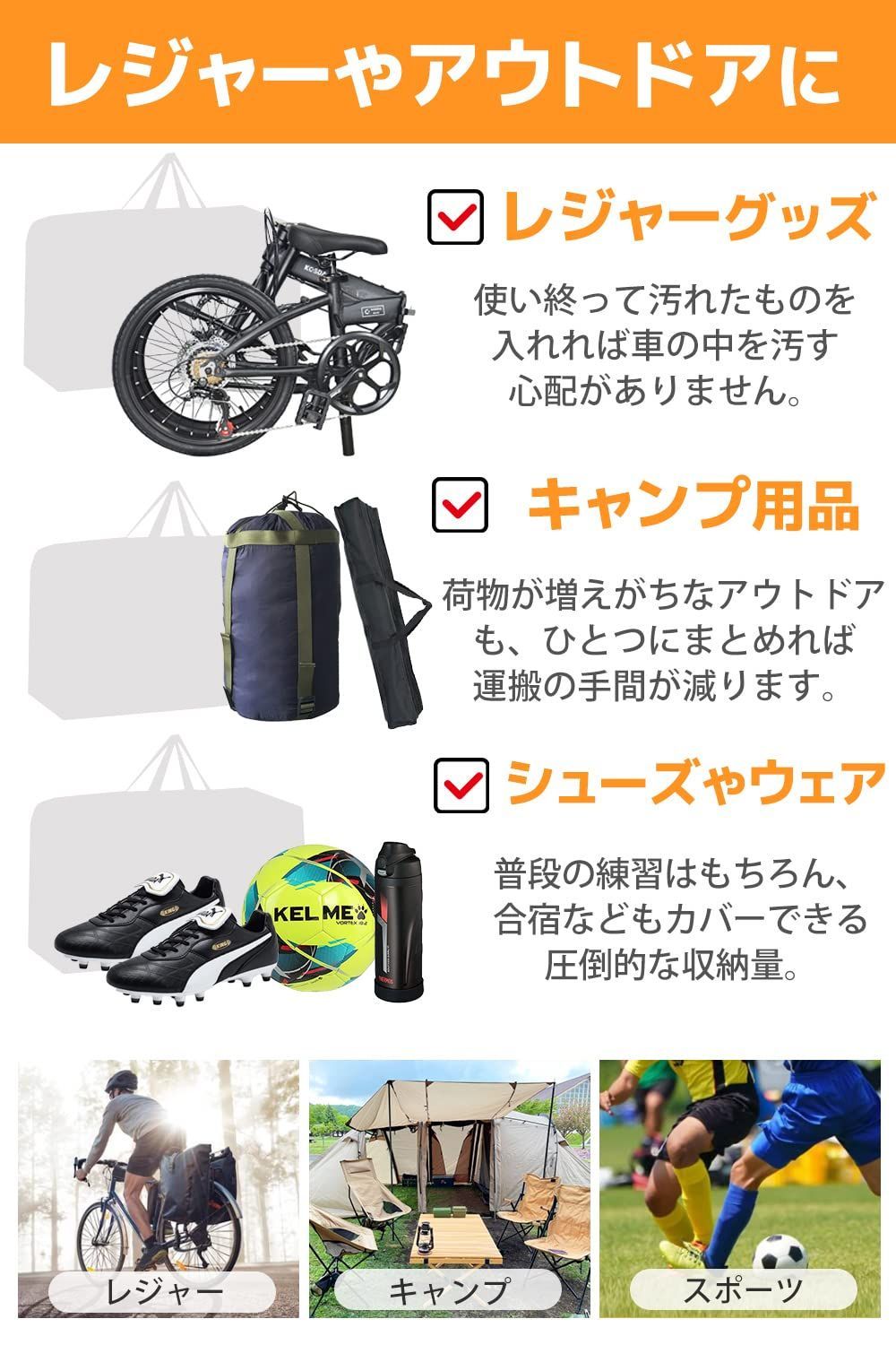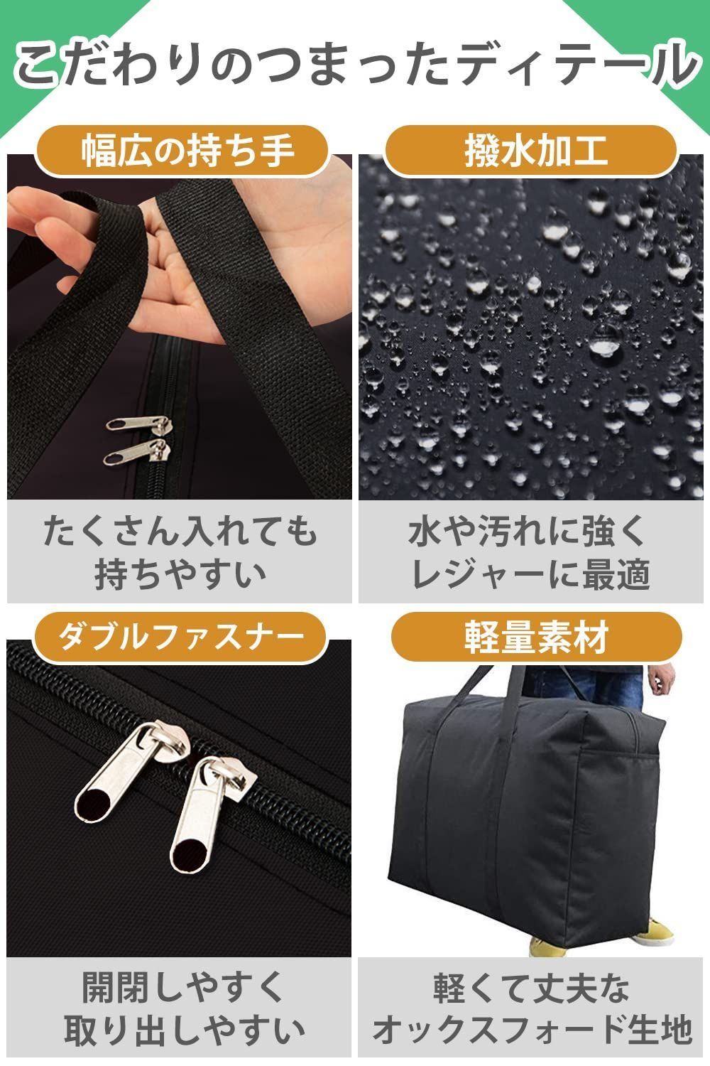 【大容量!大型ボストンバッグ】キャンプ、レジャー、引越し、コインランドリー、旅行、スポーツなどに大活躍