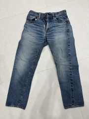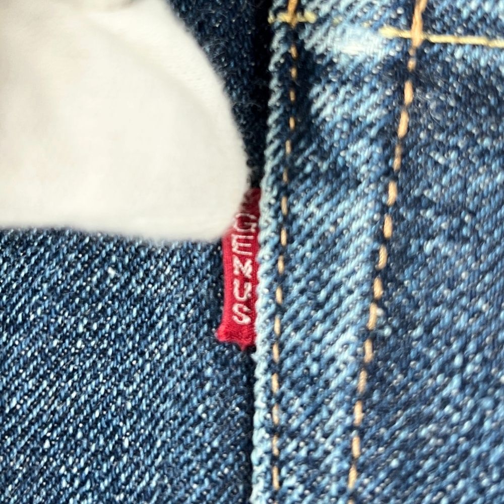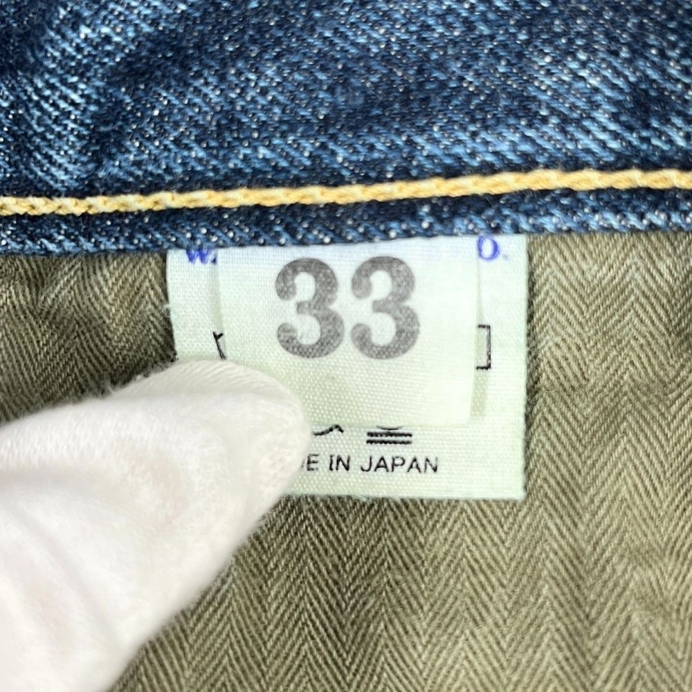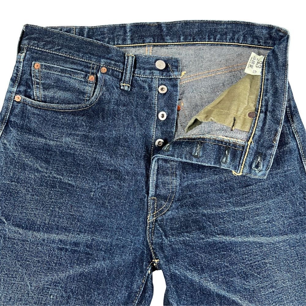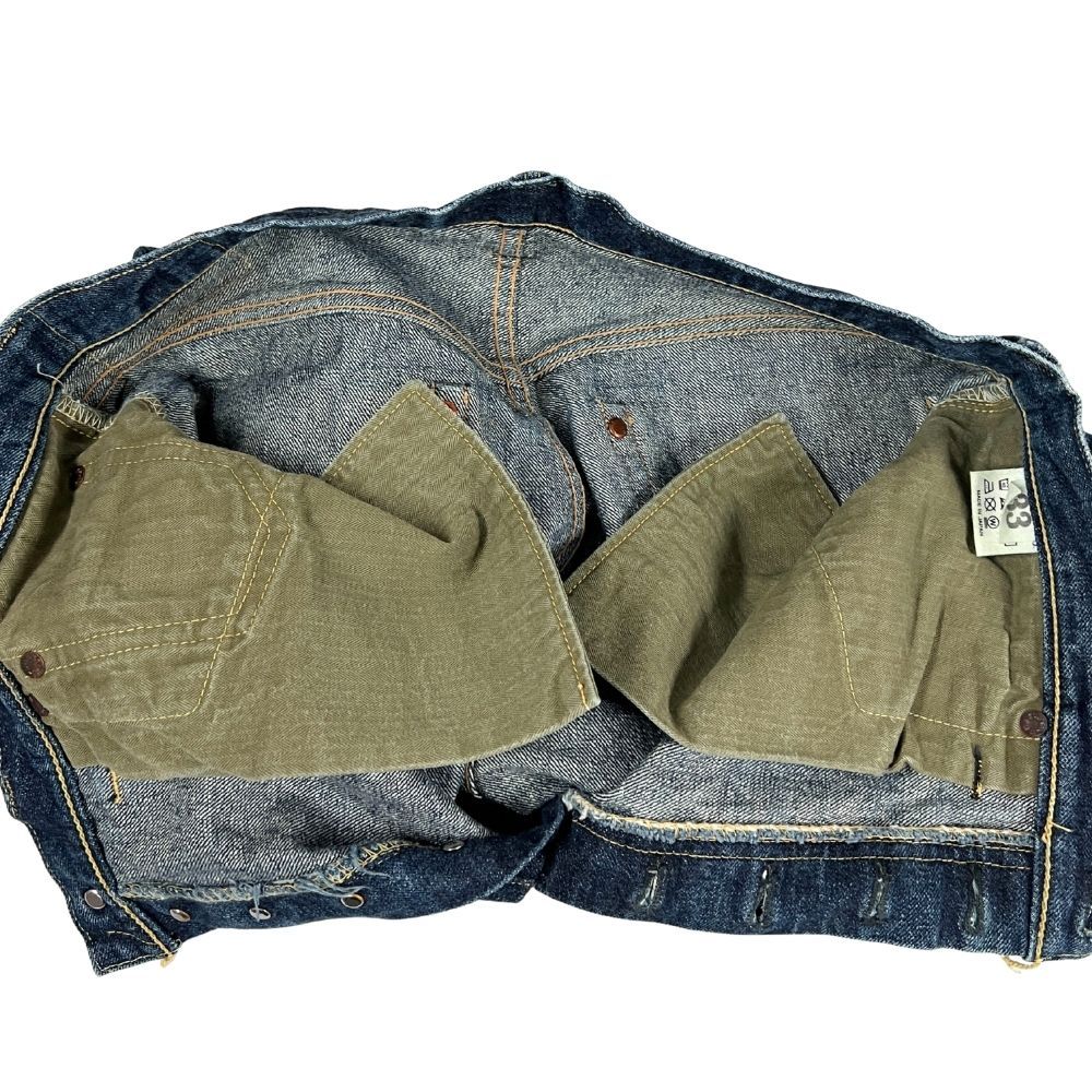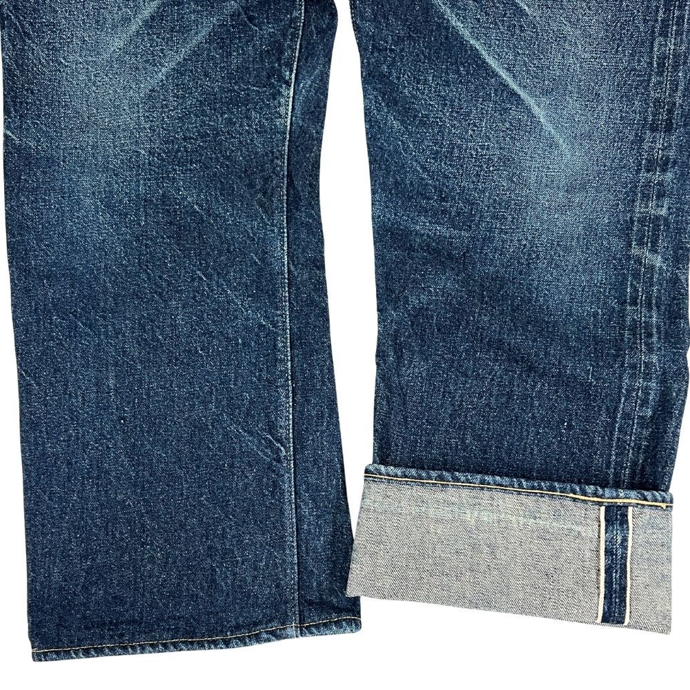 ユーズド品で着用感あり、着用による擦れ、色落ちあり、裾上げあり(裾チェーンステッチ仕上げ)、背面ウエスト革パッチに汚れあります(画像参照)。