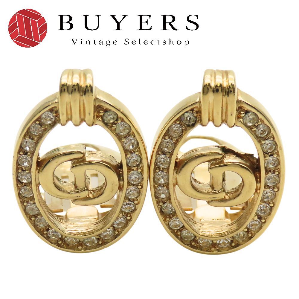 品名:【中古】 クリスチャンディオール イヤリング CDロゴ メタル ラインストーン ゴールド メッキ アクセサリー レディース 女性 Christian Dior