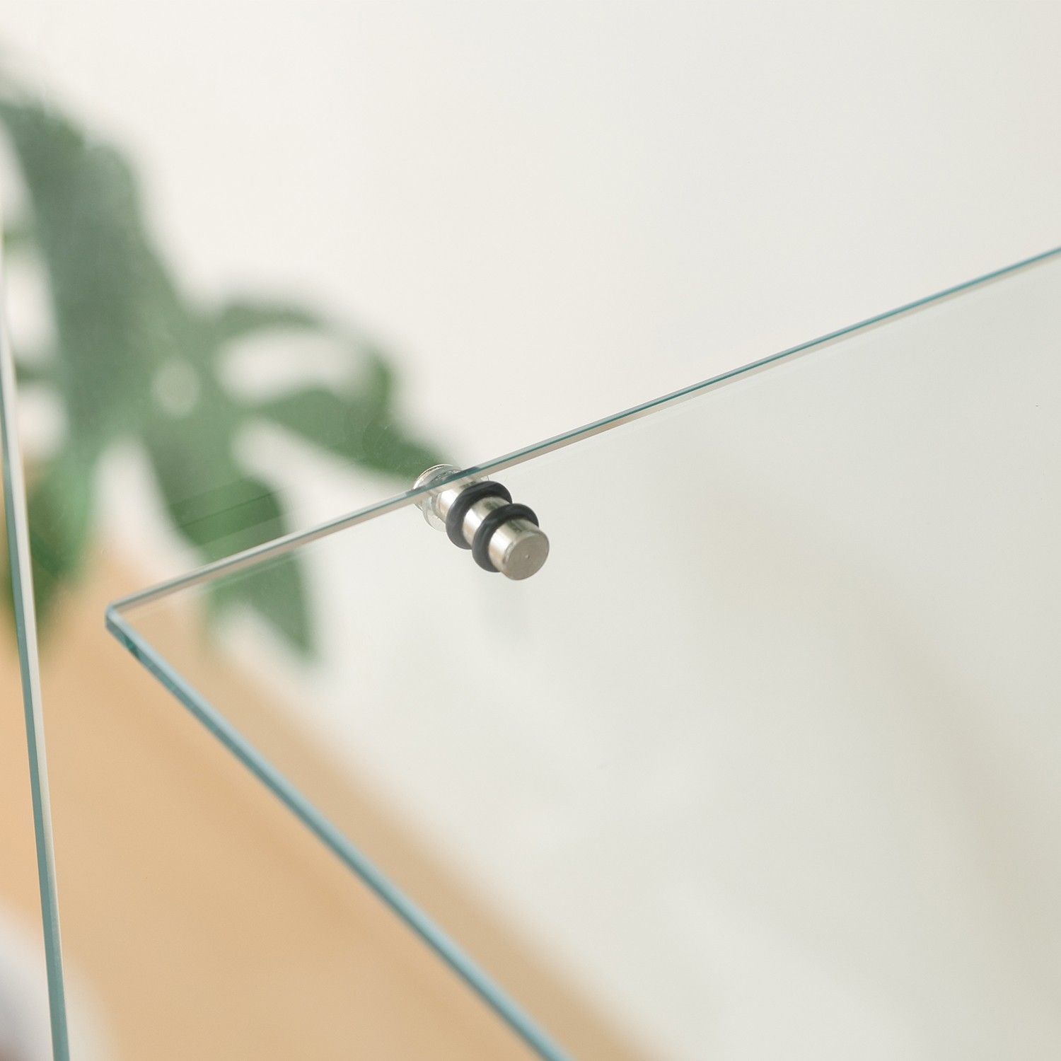 ガラス板が滑らないよう、ラバー付きのダボでしっかり固定。