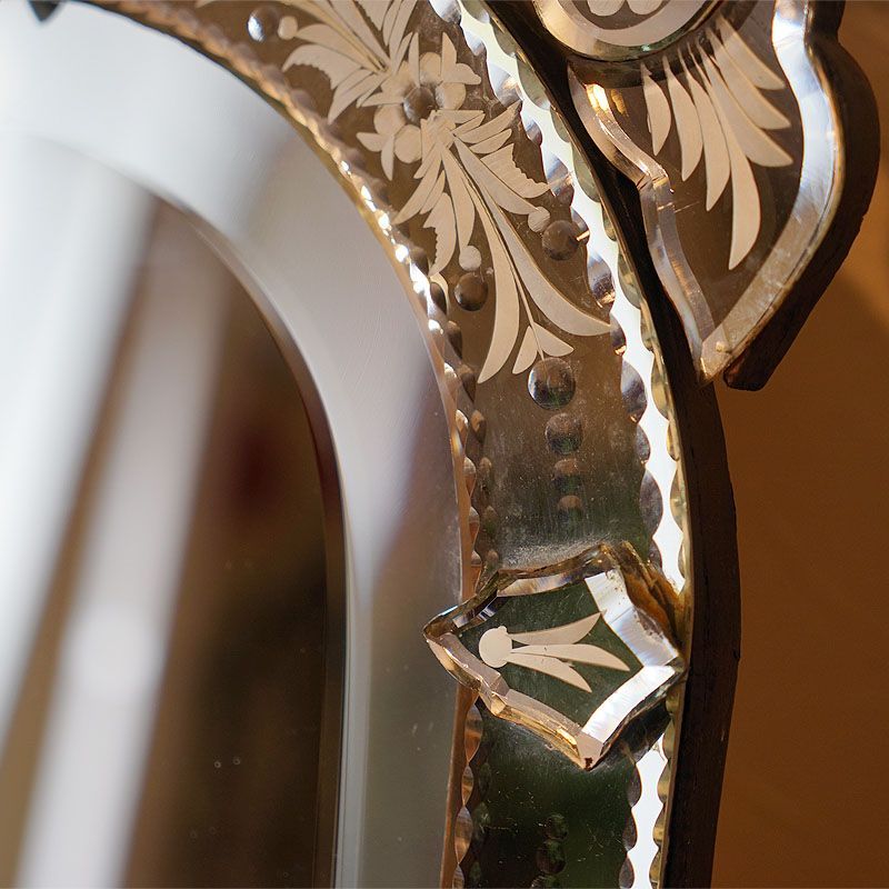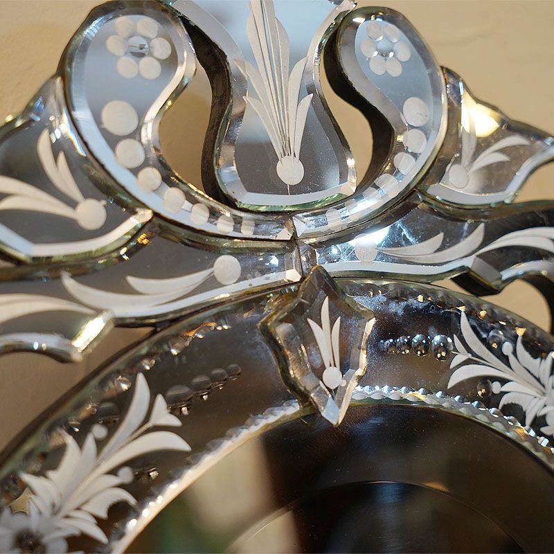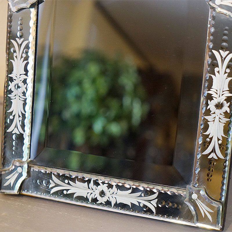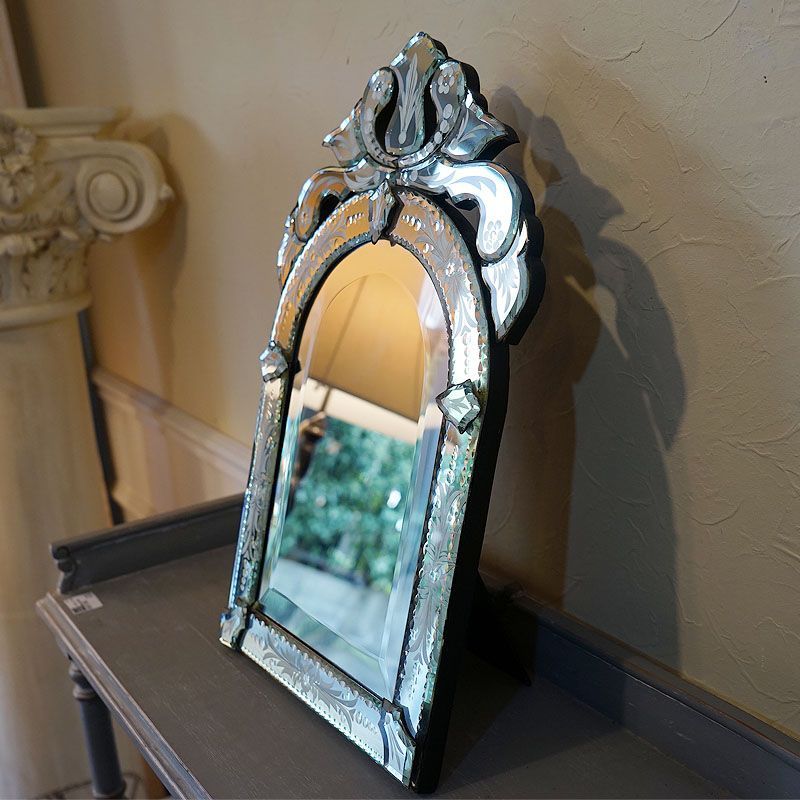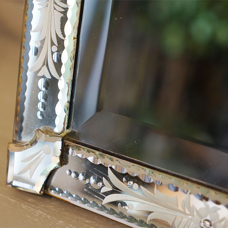 【コメント】アンティーク ビンテージ USED イタリア製 ベネチアンミラー 卓上鏡です。ヴィンテージ(中古品)になりますので、中古品の性質をよくご理解していただいた上ご購入ください。