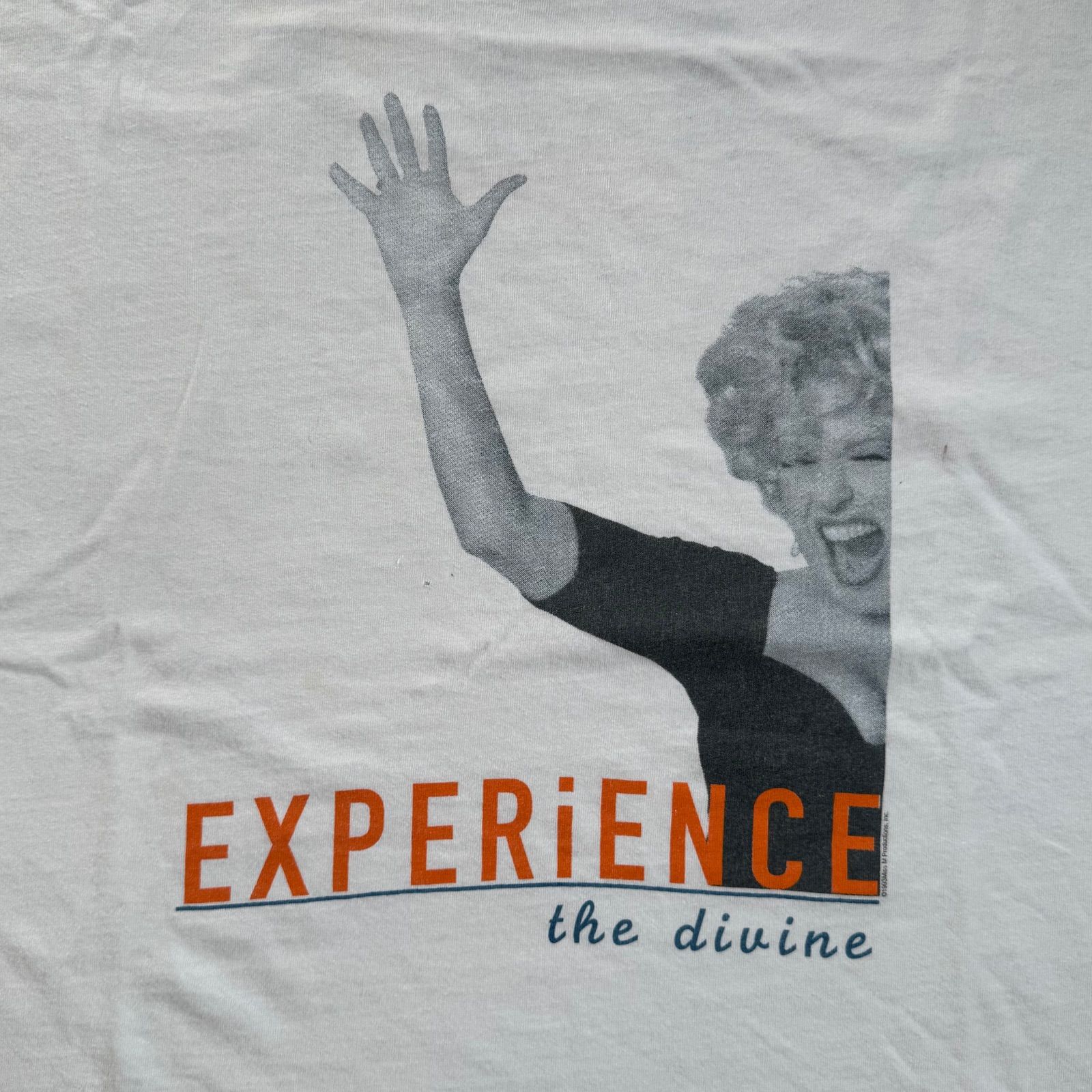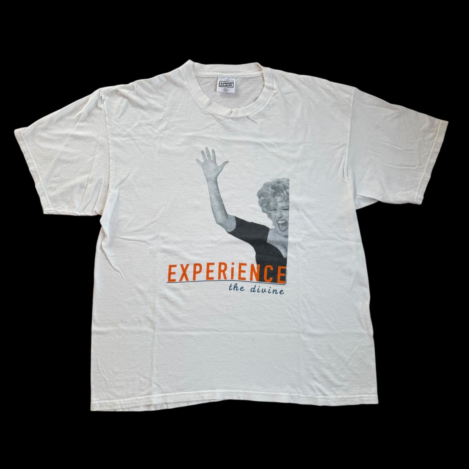90s BETTE MIDLER Print T Shirt L "EXPERIENCE" USA製 ベットミドラー バンドTシャツ 白黒フォトTシャツ モノクロ写真 ヴィンテージTシャツ 企業Tシャツ ビンテージTシャツ
