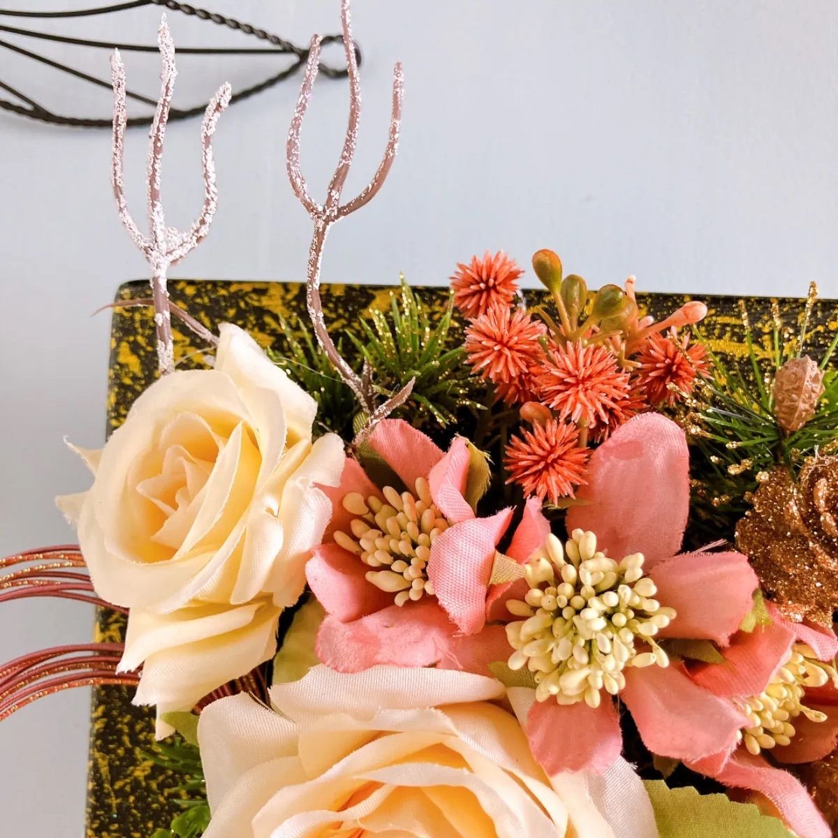 まるで本物の生花と間違えるほどのクオリティの高い花材でお作りしたリースや雑貨は 枯れない 花びらが散らない 色あせしにくく 水やりの必要もなく玄関ドアや室外にも飾れて管理もしやすく長くお楽しみ頂けたます。
