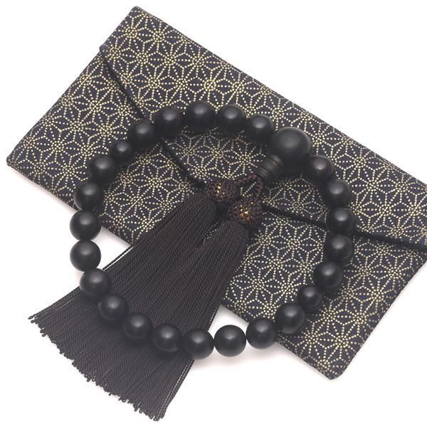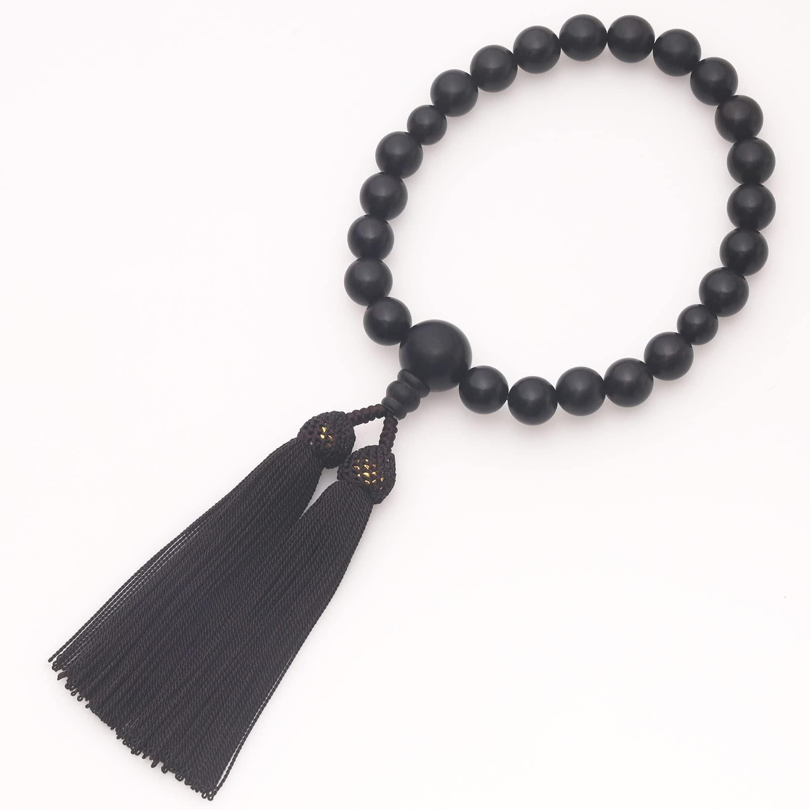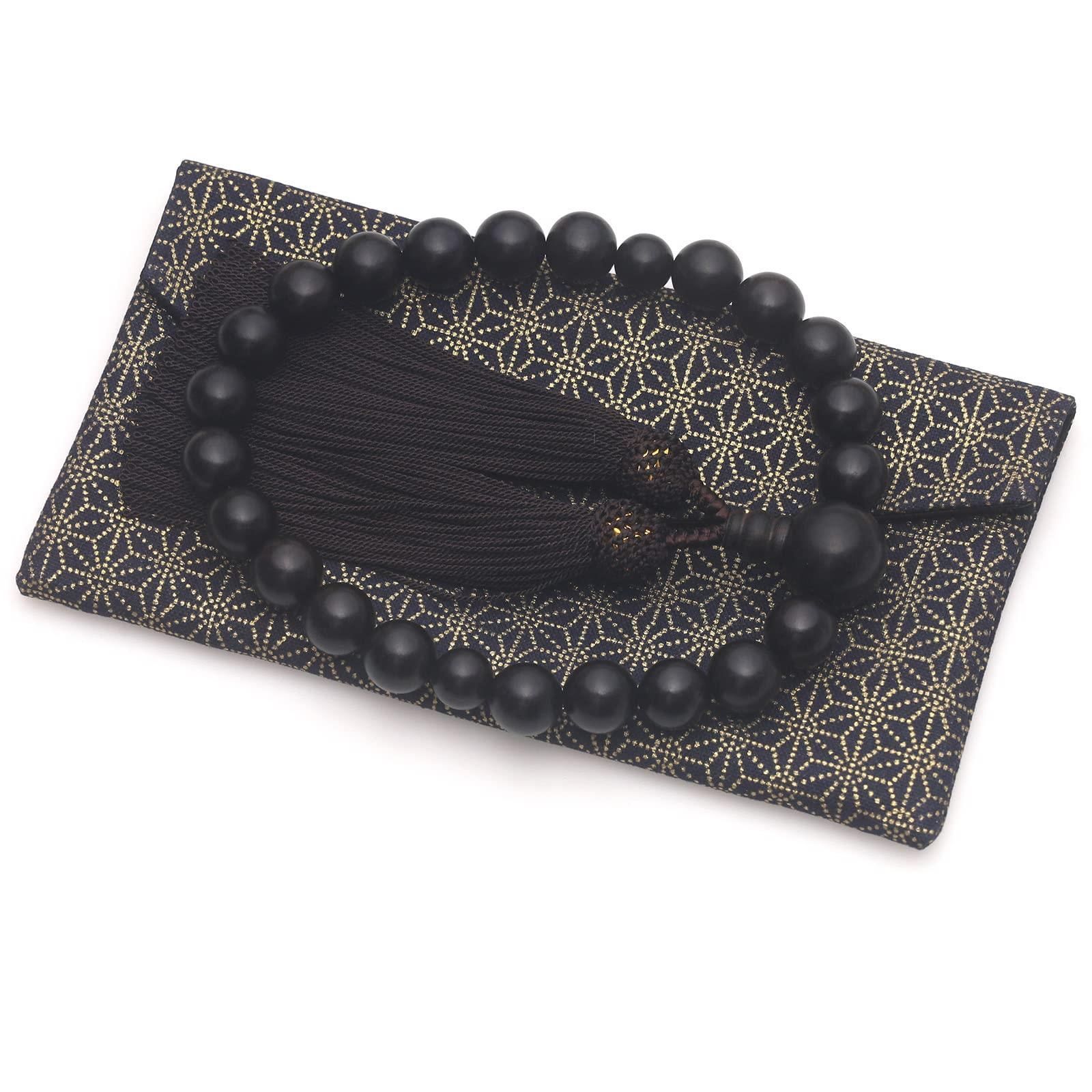 焦げ茶 通雲念珠屋 数珠 縞黒檀 念珠 葬式 葬儀 お通夜 略式 数珠袋付き 全ての宗派でお使い頂けます… (焦げ茶)