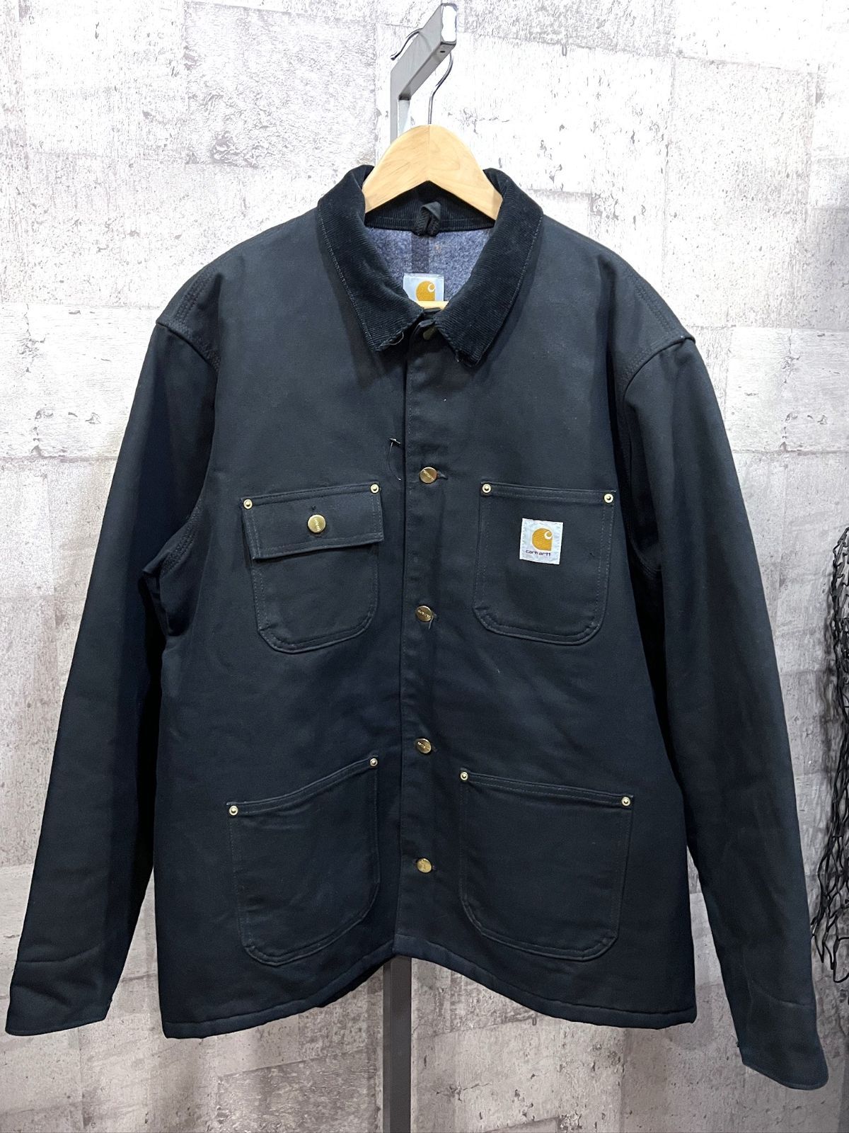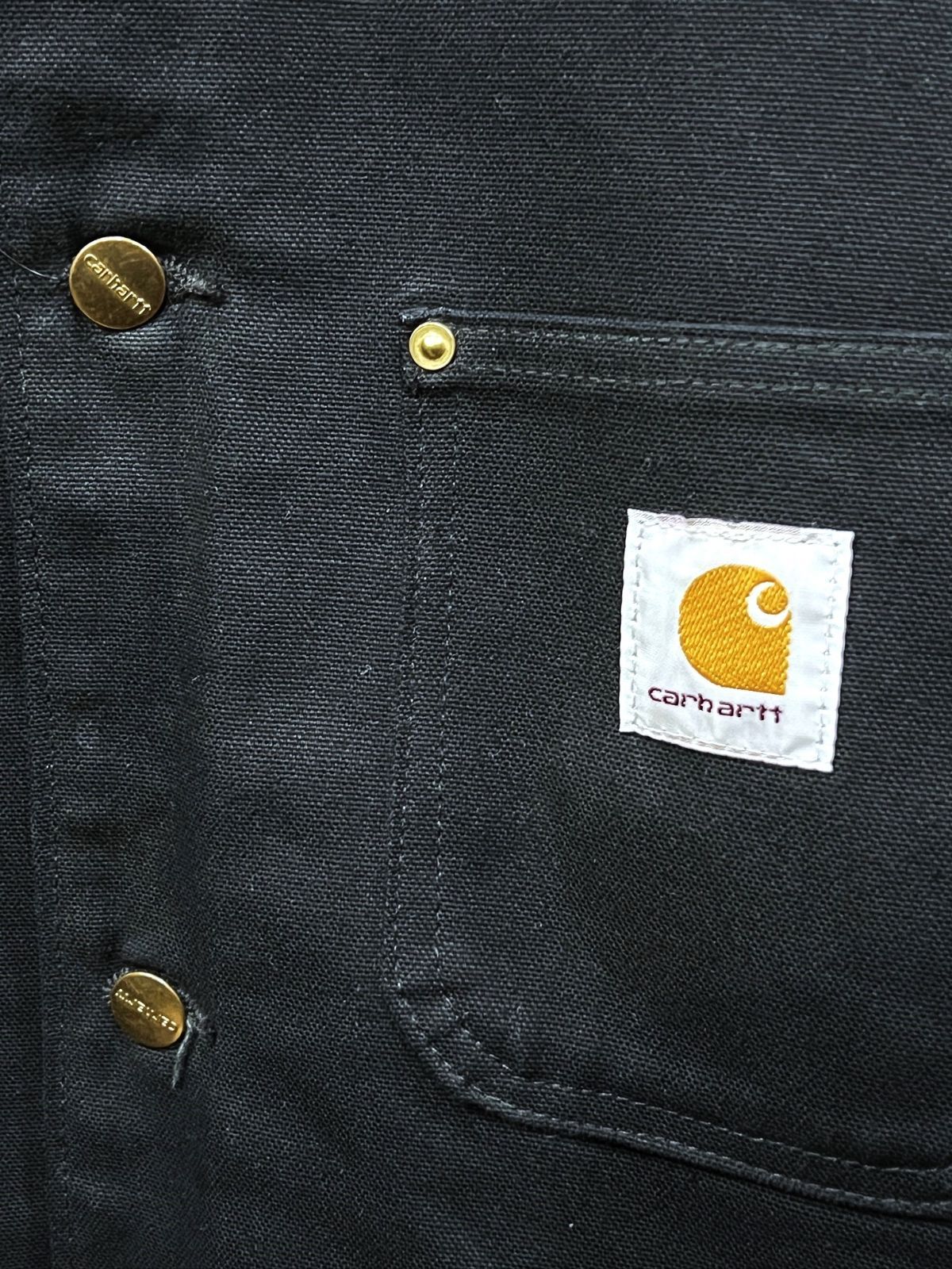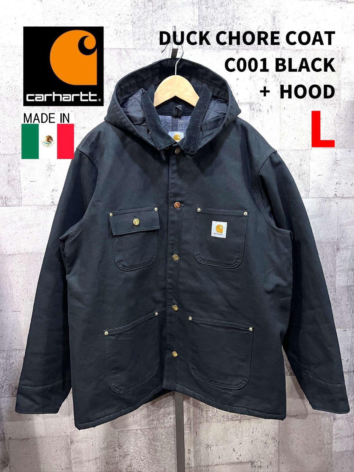 極美品 カーハート メキシコ製 C001 ダック チョアコート + フード L ブラック carhartt カバーオール