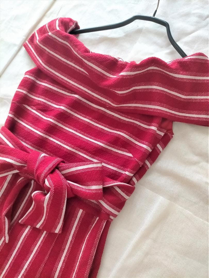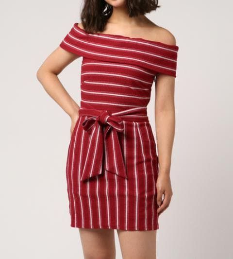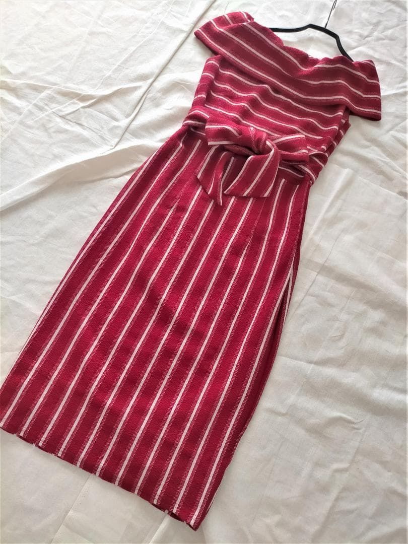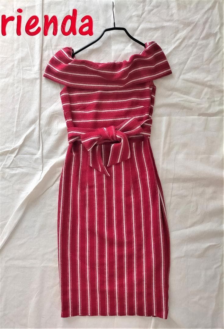 【商品】未使用品 rienda リエンダ MIXボーダーオフショルワンピース