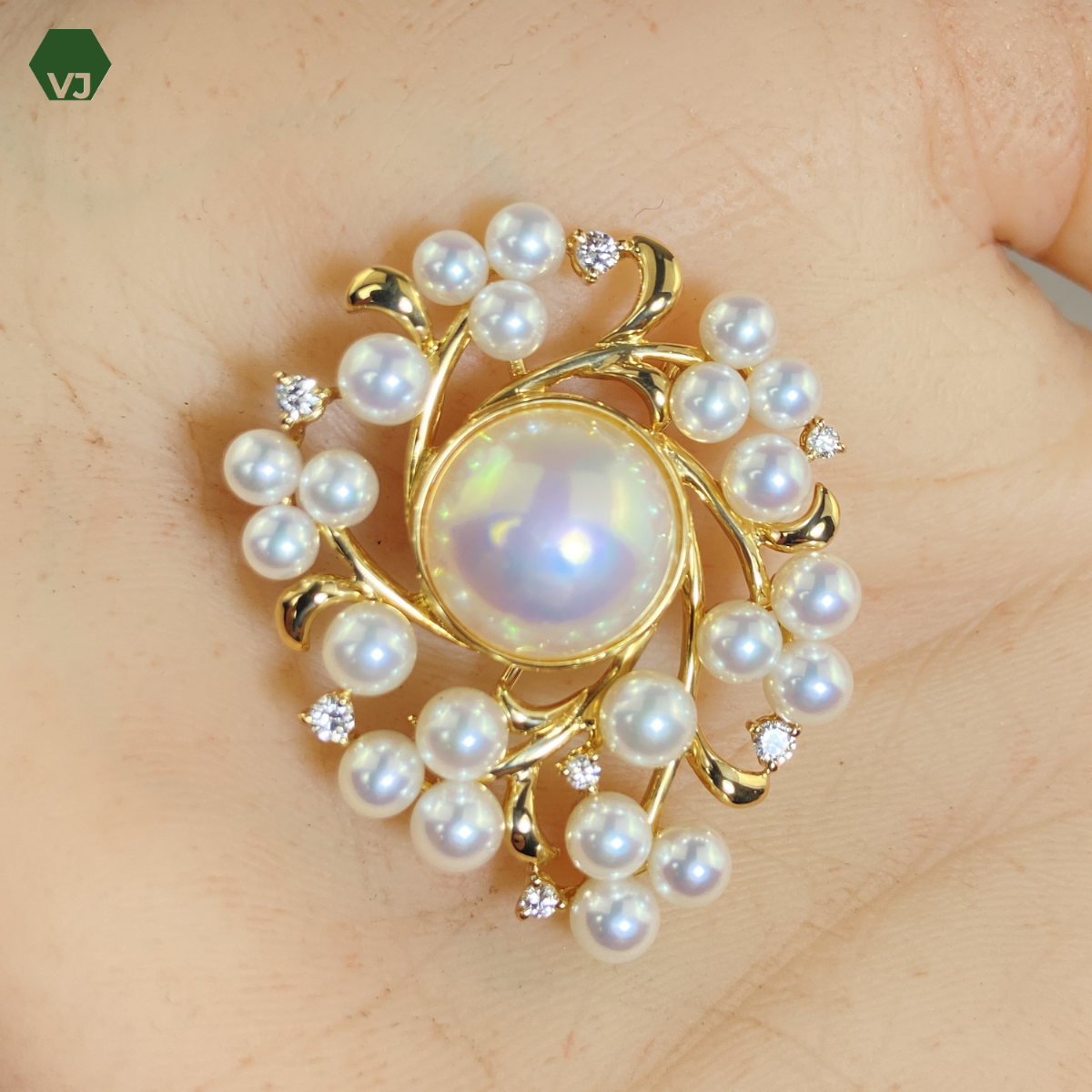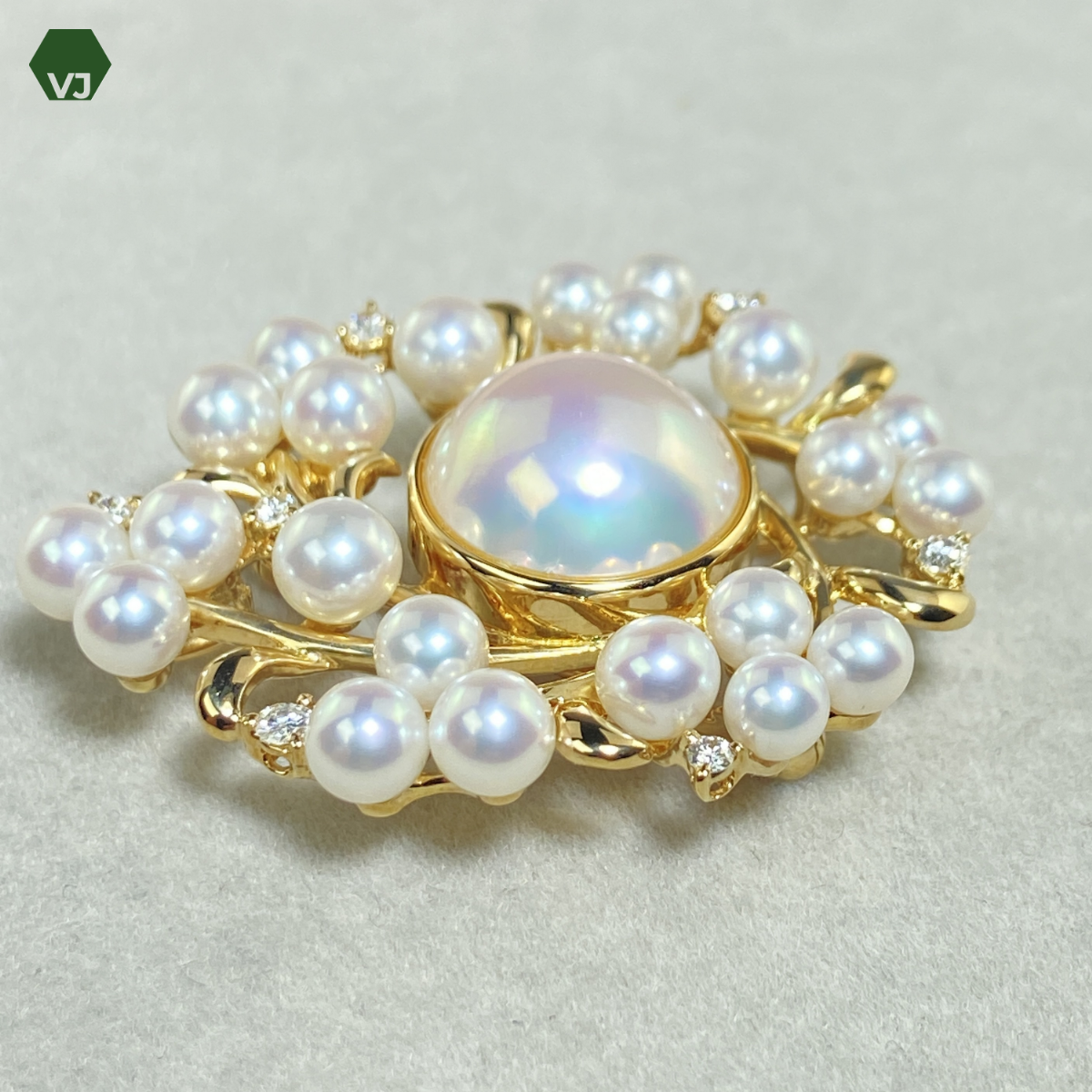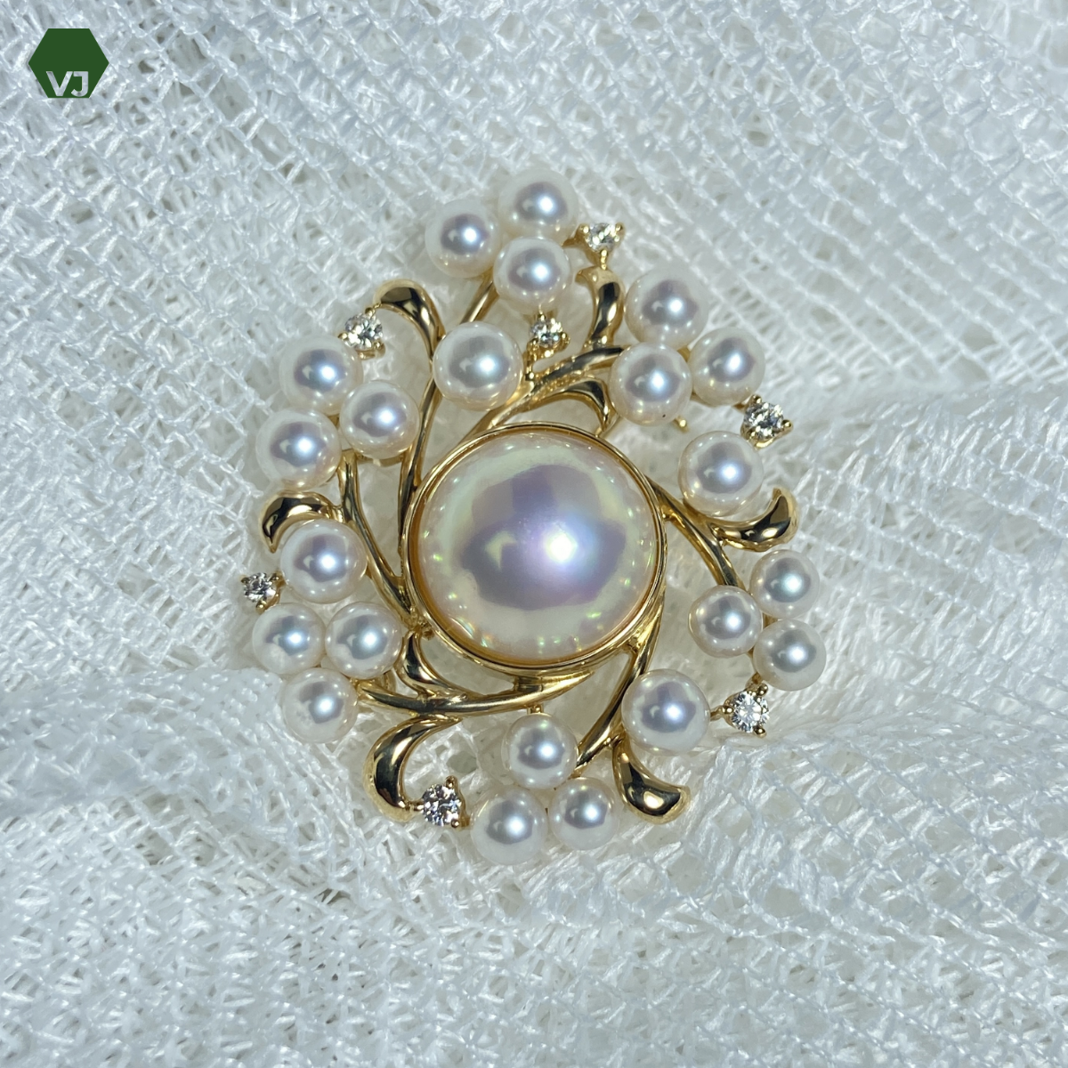 上質なパールとダイヤモンドを組み合わせた、TASAKIならではのエレガンスが光るK18YGブローチです。