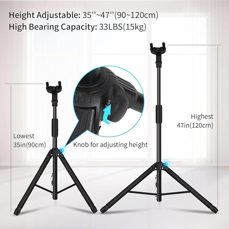 【ポータブル】折りたたみ式で省スペース - ギターを置く前に、脚が折れないように、ギタースタンドベースのノブを締めてください。