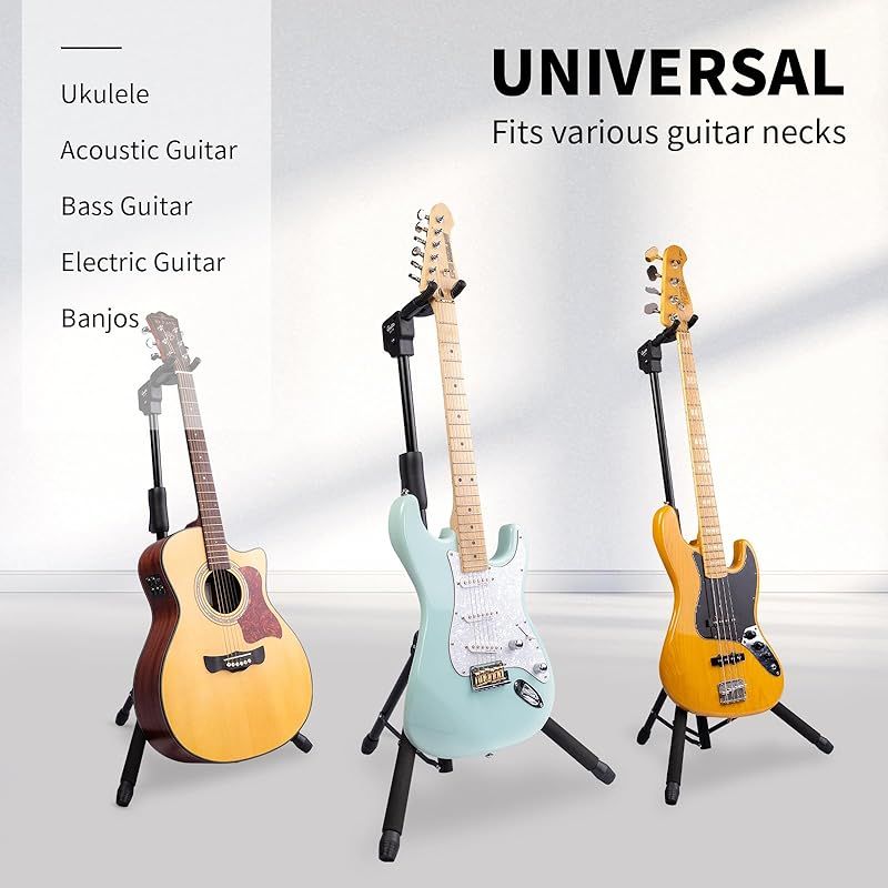 【幅広い用途】 ほとんどのギターの形状にフィットし、どんなスケールの長さにも簡単に調整できます。 このアコースティックギタースタンドは、エレキギターやベースギター、マンドリン、バンジョー、その他の弦楽器などに適しています。
