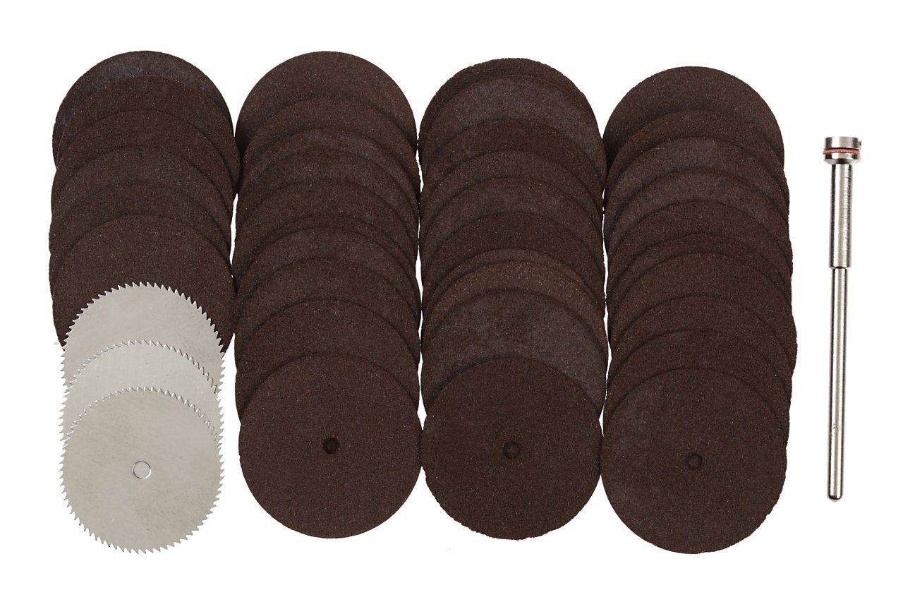 UID 40PCS ミニルーター 切断 & カッターセット 切断砥石(カットオフホイール) 36枚 小径丸のこ刃 3枚 高精度シャフト(マンドレル)1本 【砥石径24mm 厚み0.9mm小径丸のこ刃 22mm 厚み0.25mm シャフト軸径2.35mm】プロクソン(PROXXON) 標準軸シャフト(マンドレル)対応 2.35mm NO.825