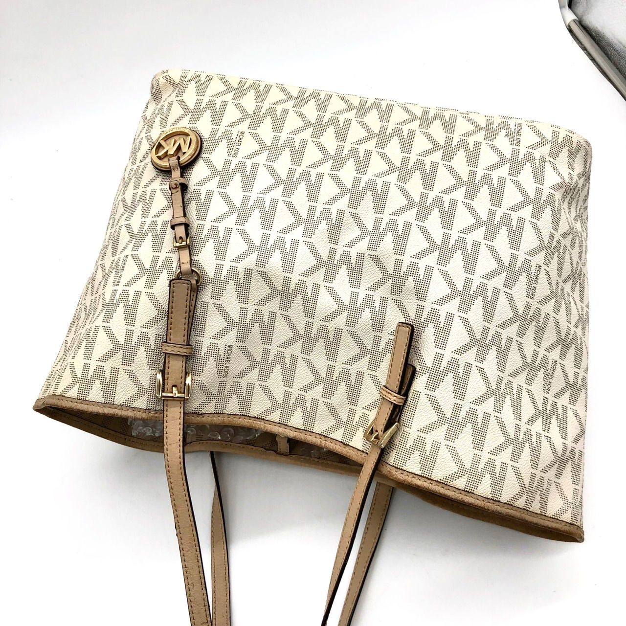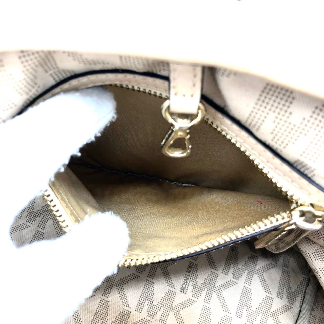 ■カラー:ホワイト×ベージュ(MK柄)×ゴールド金具