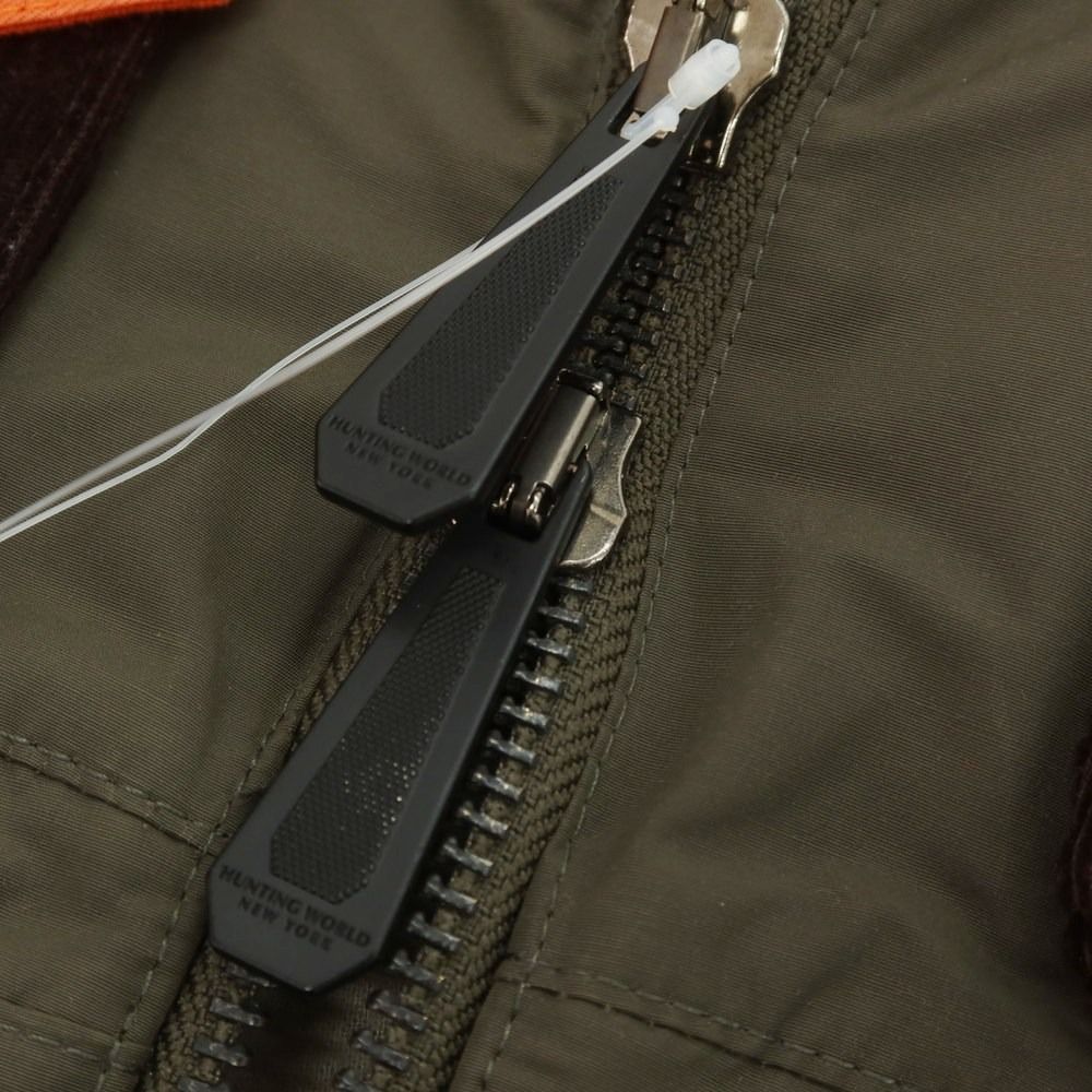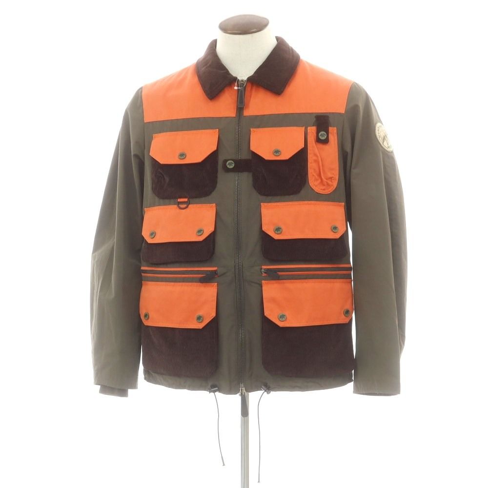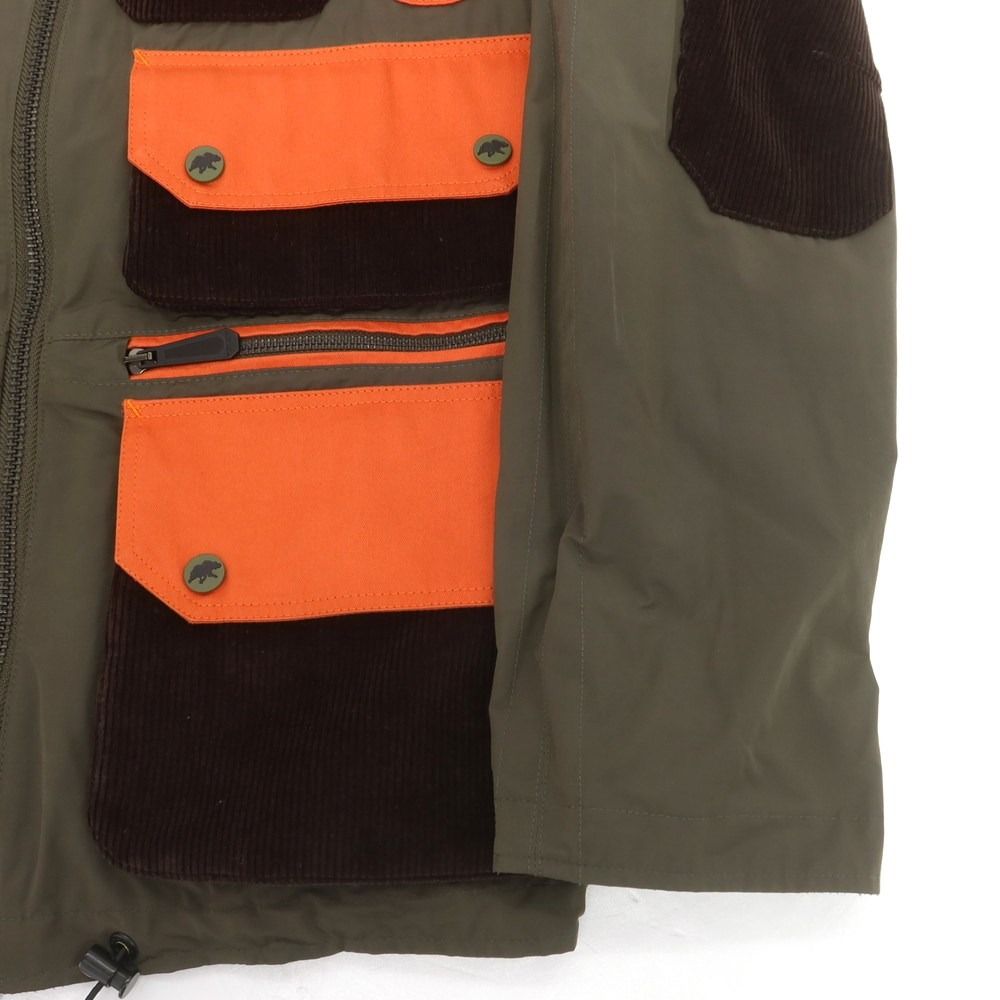 適度な張りがあるポリエステルコットンを用いたハンティング系のジャケットです。前身にたくさんついたポケットがアクセントになりまして、オレンジやコーデュロイとの素材使いも面白い一着です。