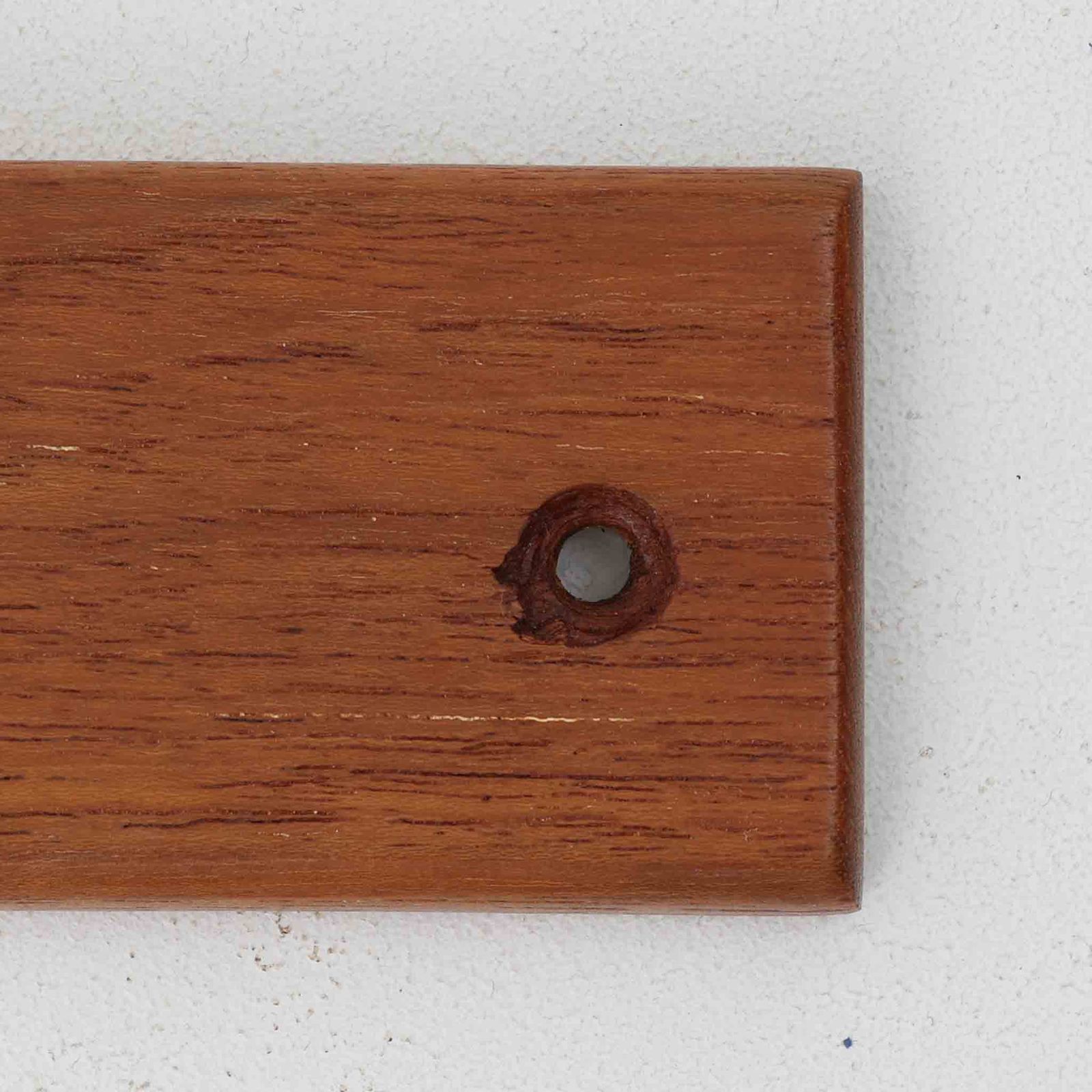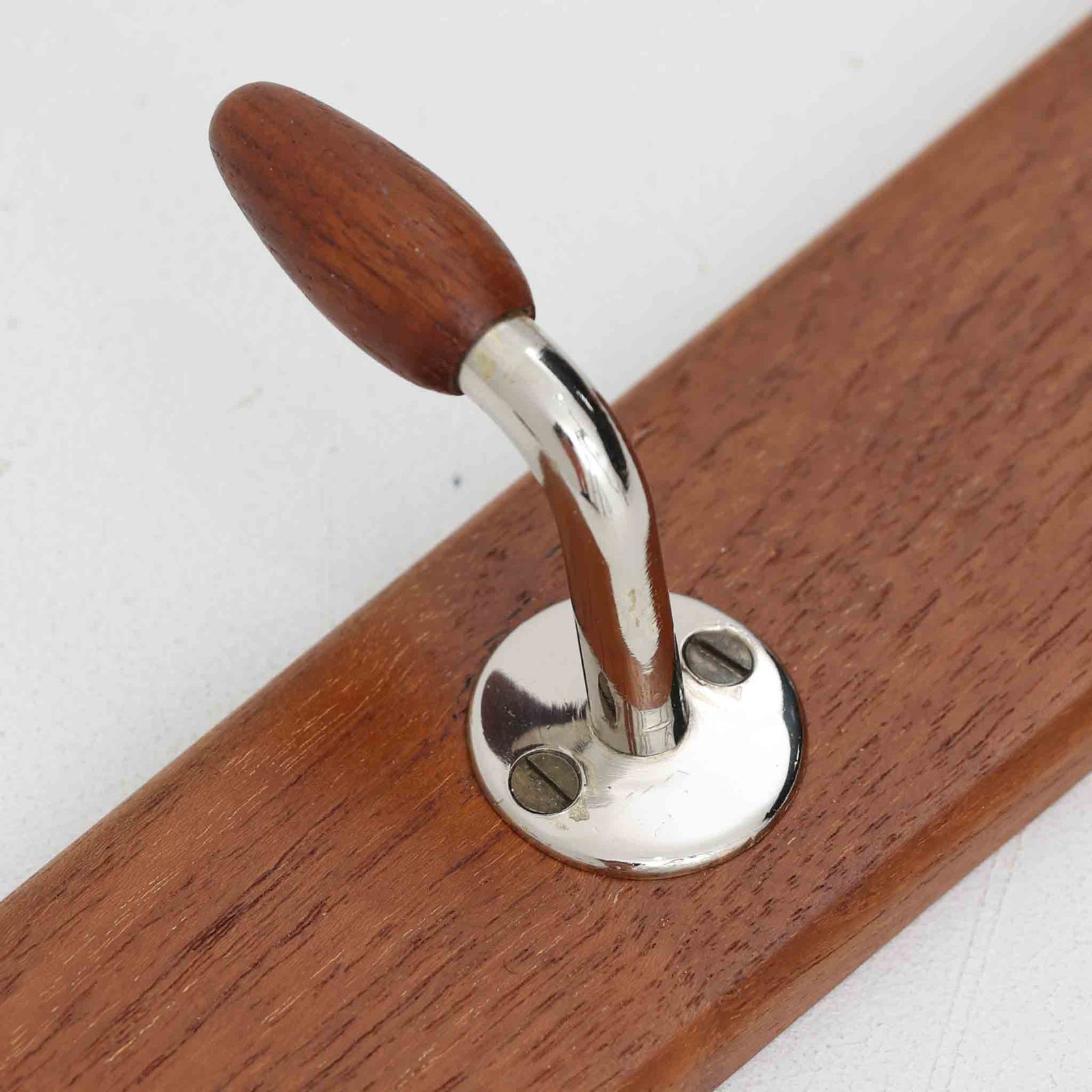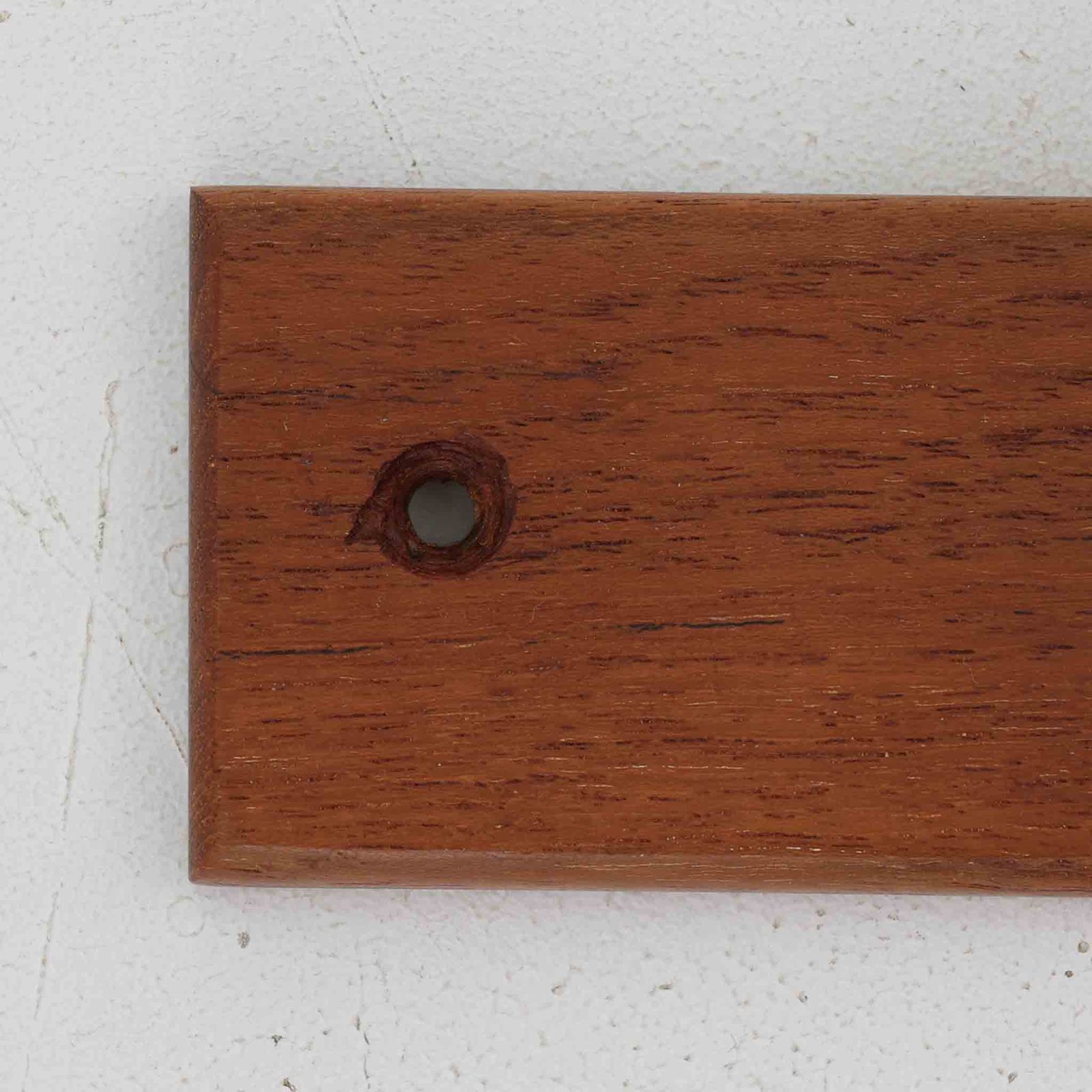 チーク材の温かみあるベースにメタル製の3連フックを組み合わせたデンマーク製のウォールハンガーです。丸みのある木製キャップ付きのフックはコートやバッグを掛けても傷つきにくく、機能性とデザイン性を両立した北欧ビンテージらしいディテールが魅力です。玄関や寝室、ワークスペースなど壁面を活用した収納に便利で、単体での使用はもちろん複数並べて使用しても美しく空間に溶け込みます。ミニマルなデザインでインテリアを選ばず永くお使いいただけるアイテムです。