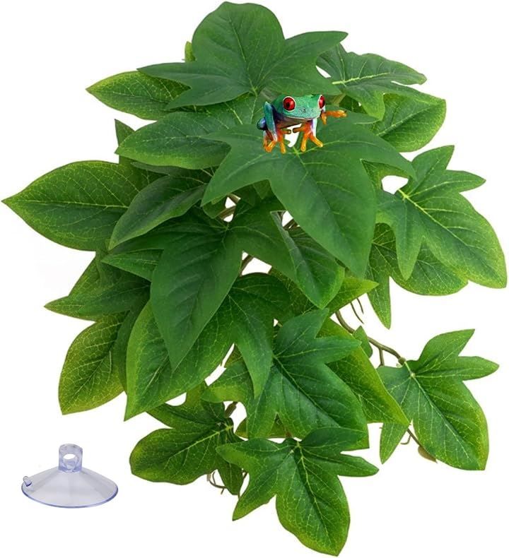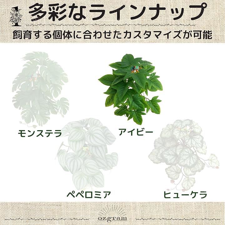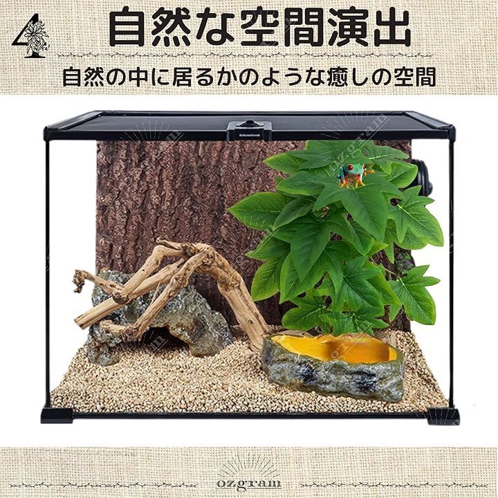 「熱帯雨林の隠れ家を再現」 リアルな造形の葉が爬虫類・両生類に快適な隠れ場所を提供しながら、行動するスペースを作り自然の雰囲気を再現します。