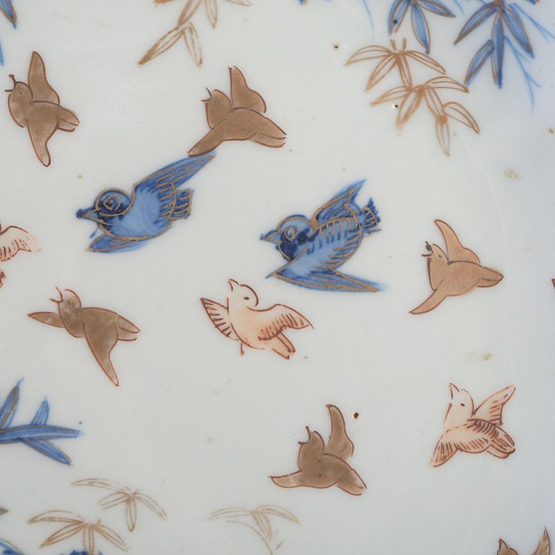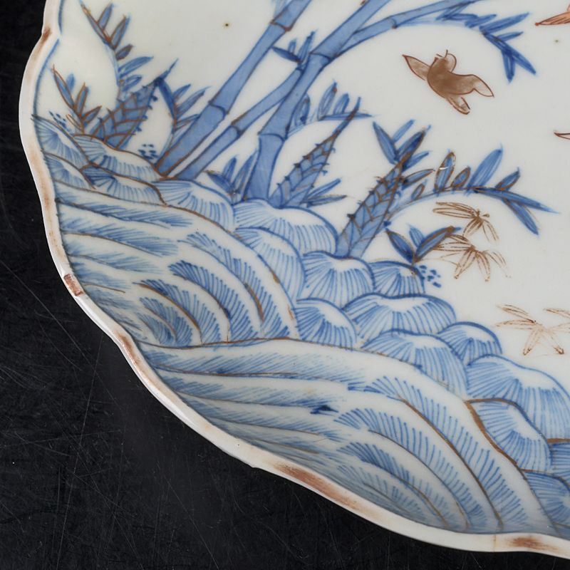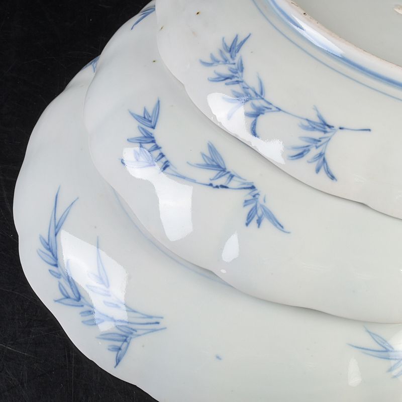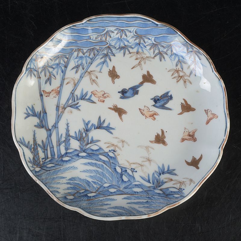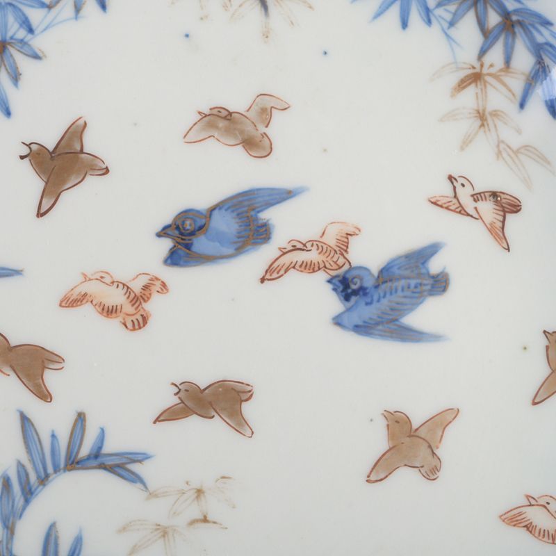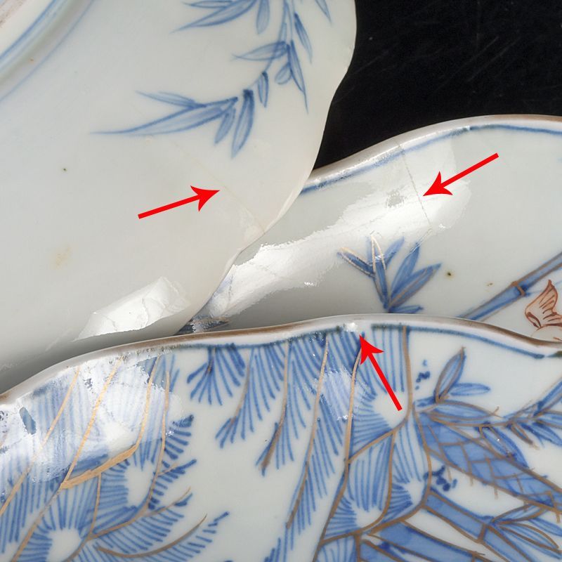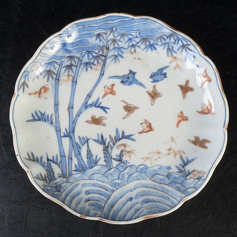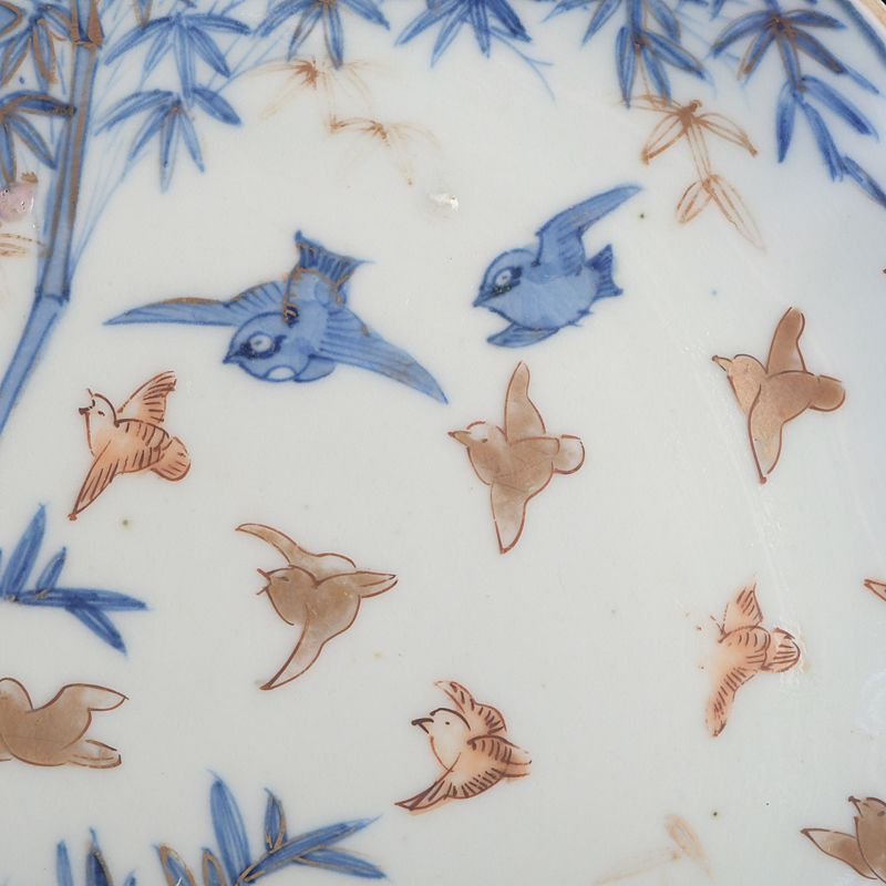 伊万里焼 染錦 竹鳥文 輪花皿 角福銘 三点 N S476