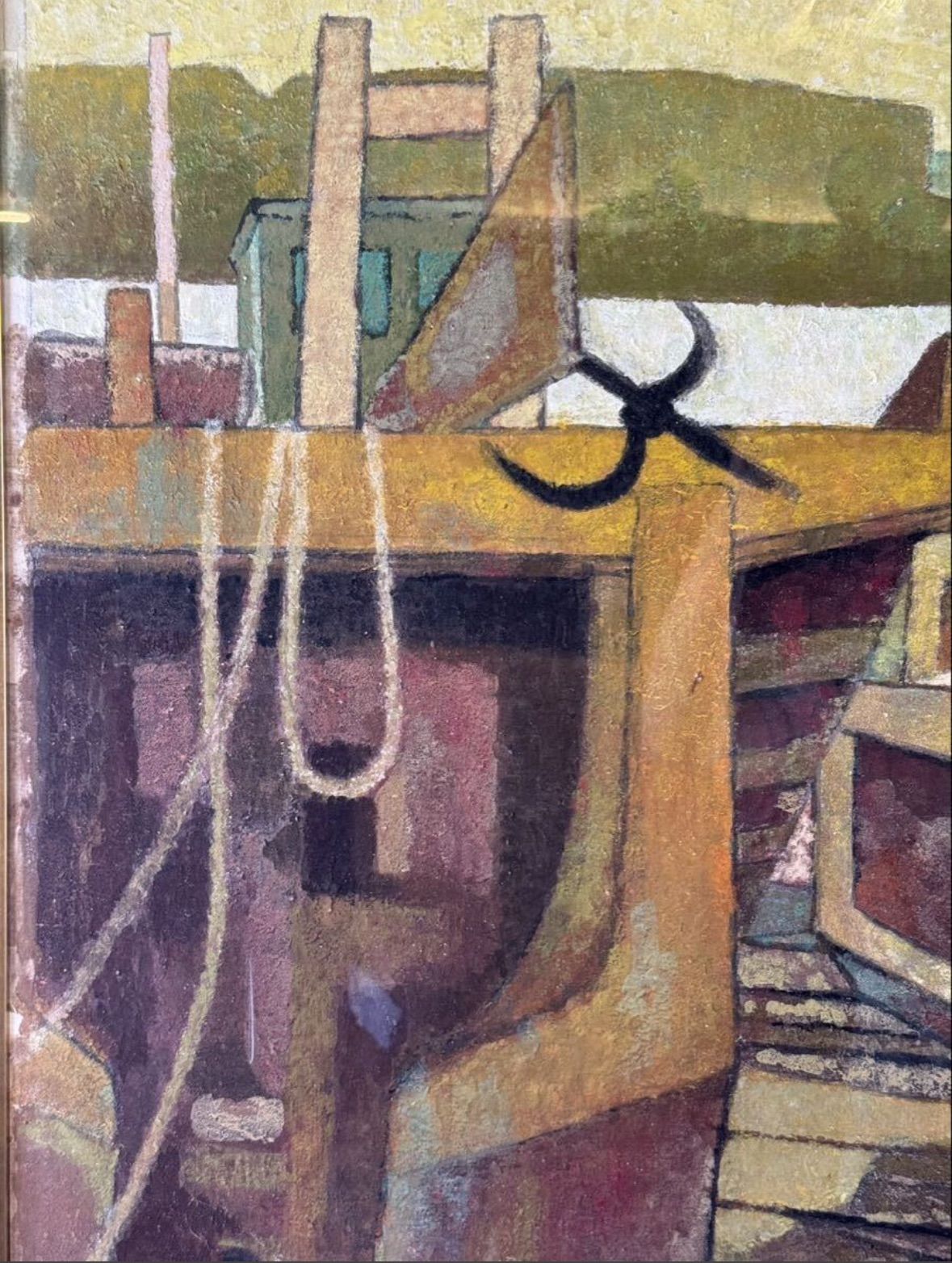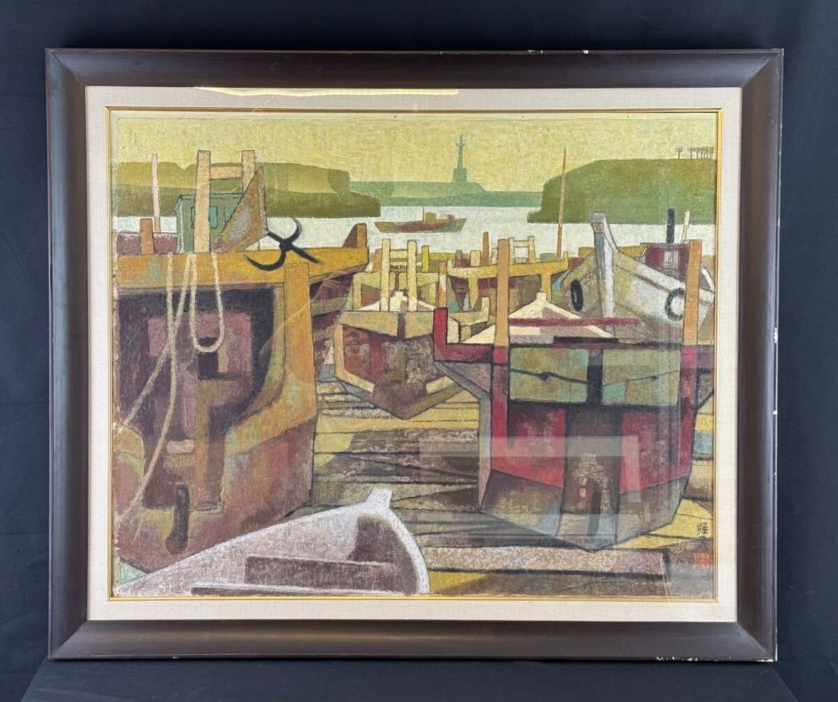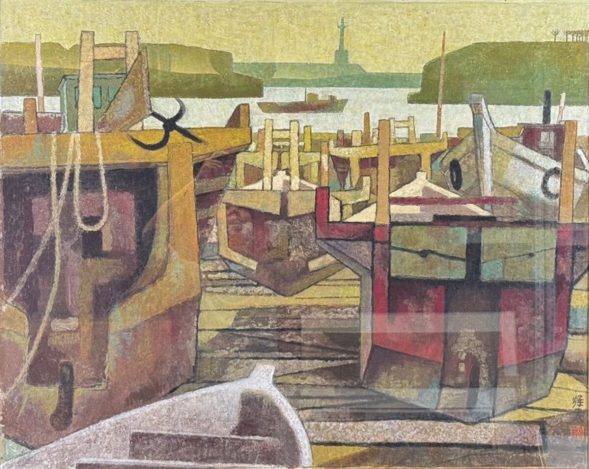 所輝夫 「渥美の漁港」日本画 40号 風景画 昭和45年日本美術院展入選作品 医学博士 創美会主宰 愛知県