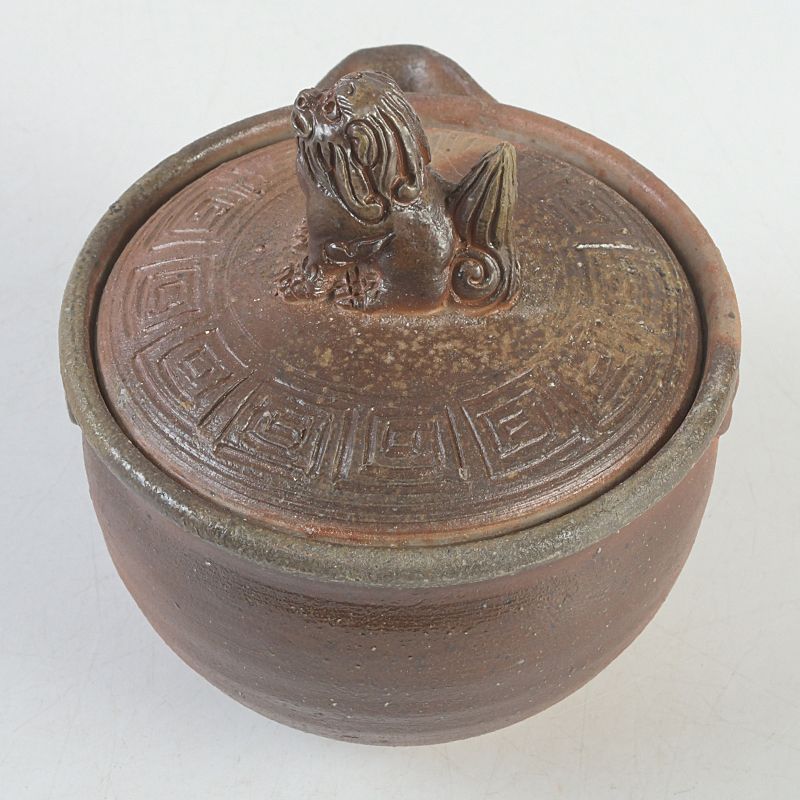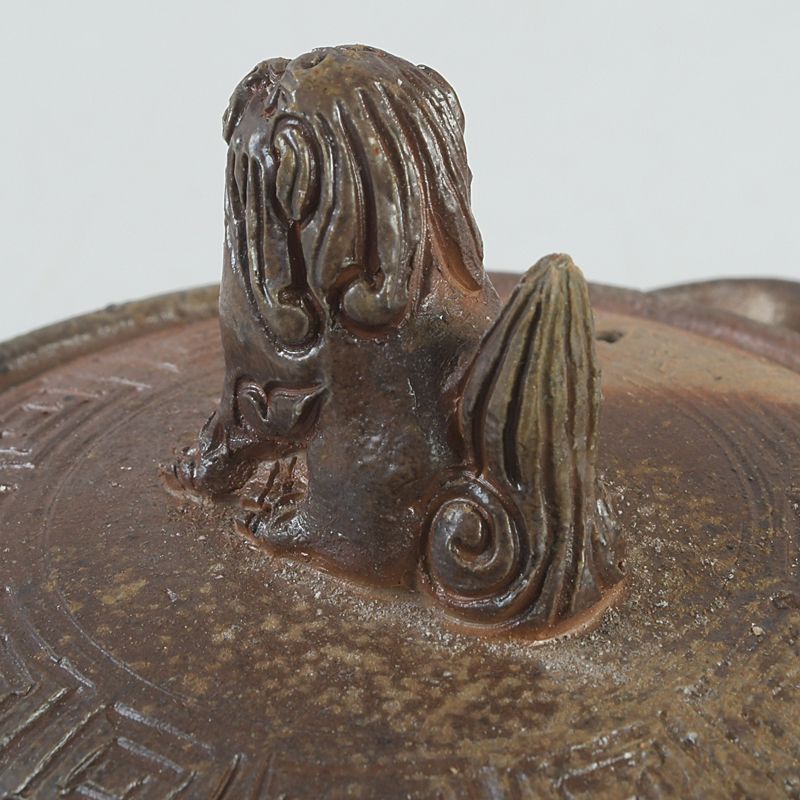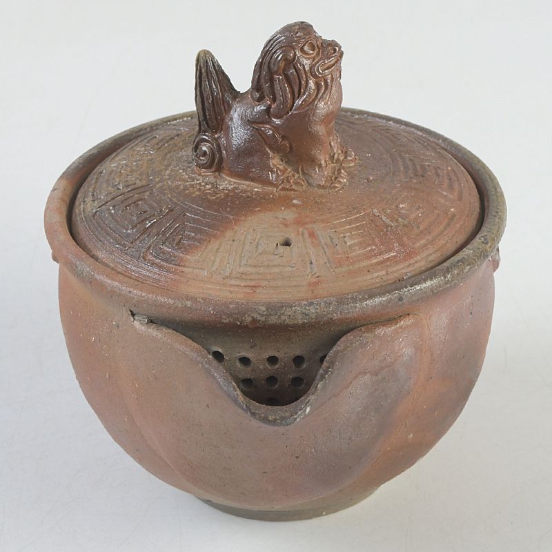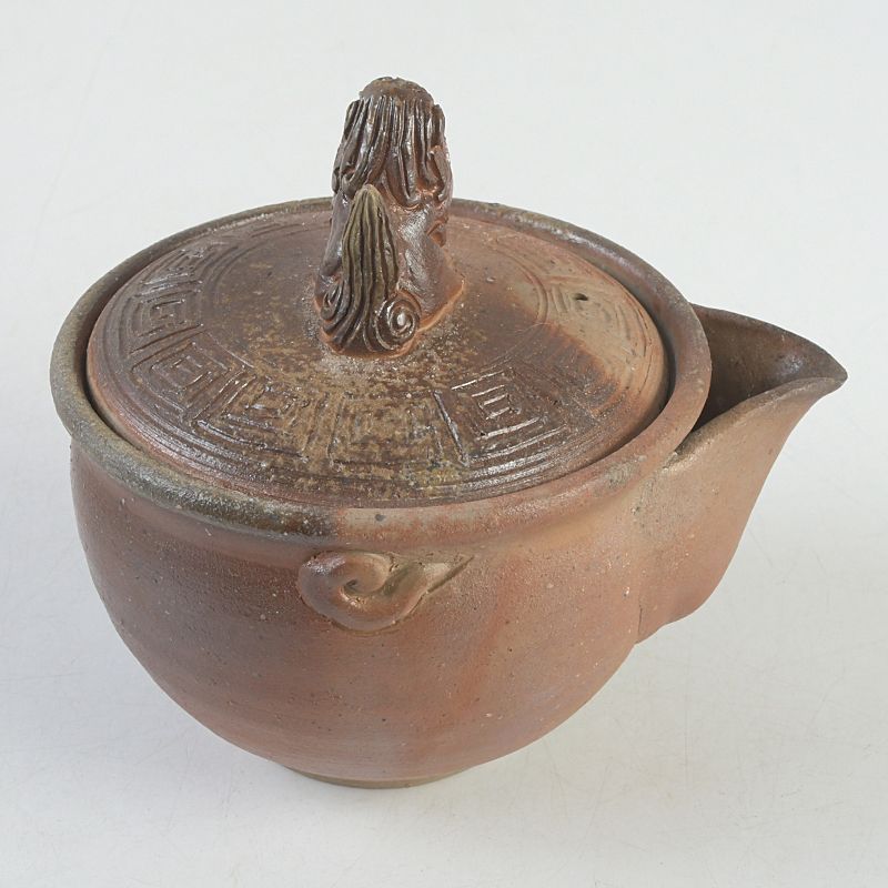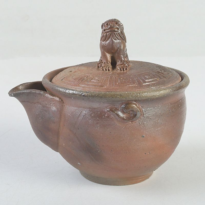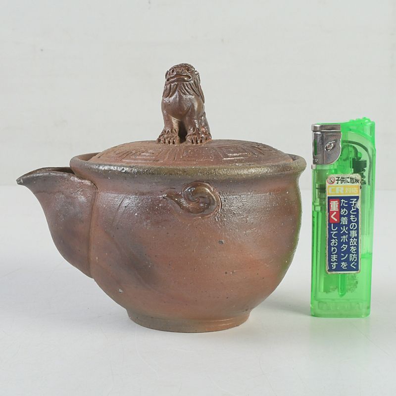 煎茶道具 備前焼 明光窯 獅子摘 宝瓶 急須 共箱 D S479