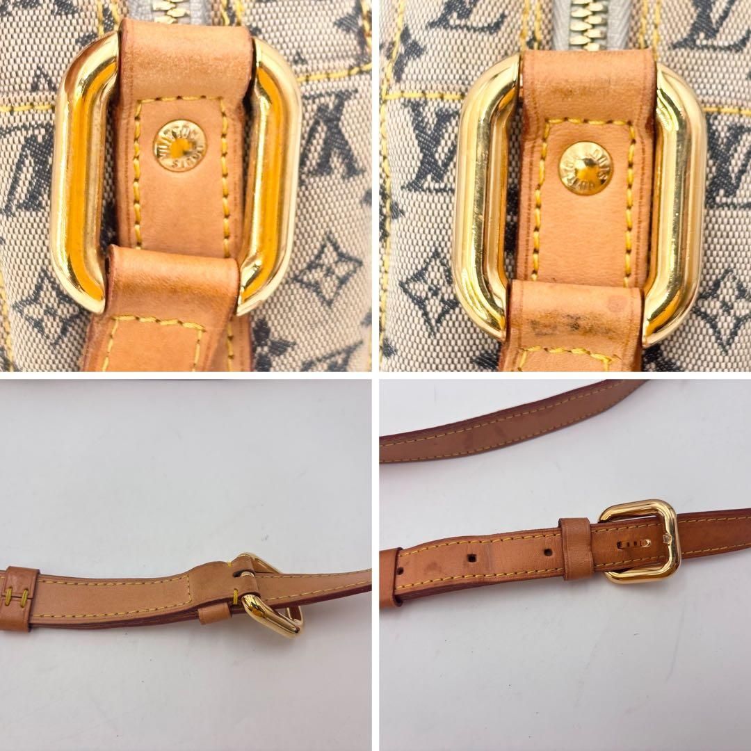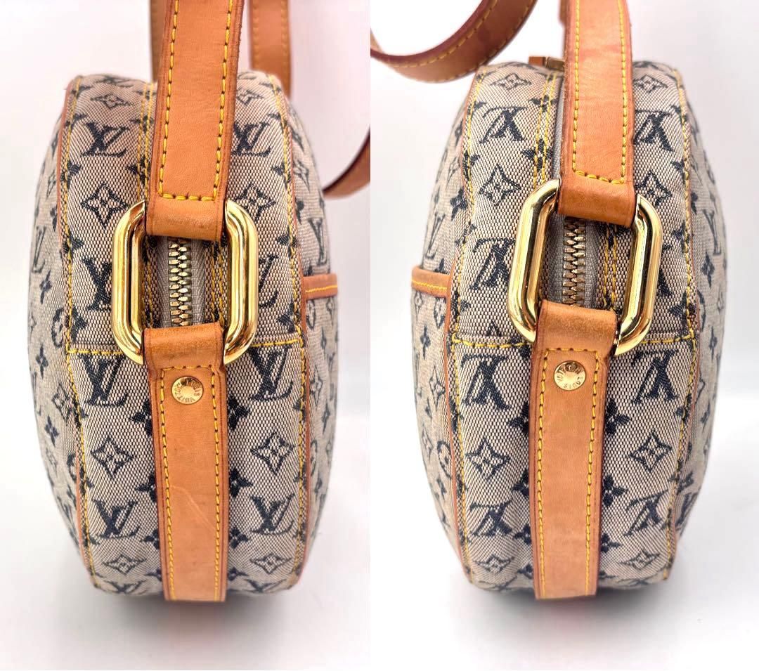 LOUIS VUITTON ルイヴィトン モノグラムミニ ジャンヌGM ショルダーバッグ 斜めかけ ラウンド クロスボディ キャンバス ブルー 青 レザー ヌメ革 通勤 通学