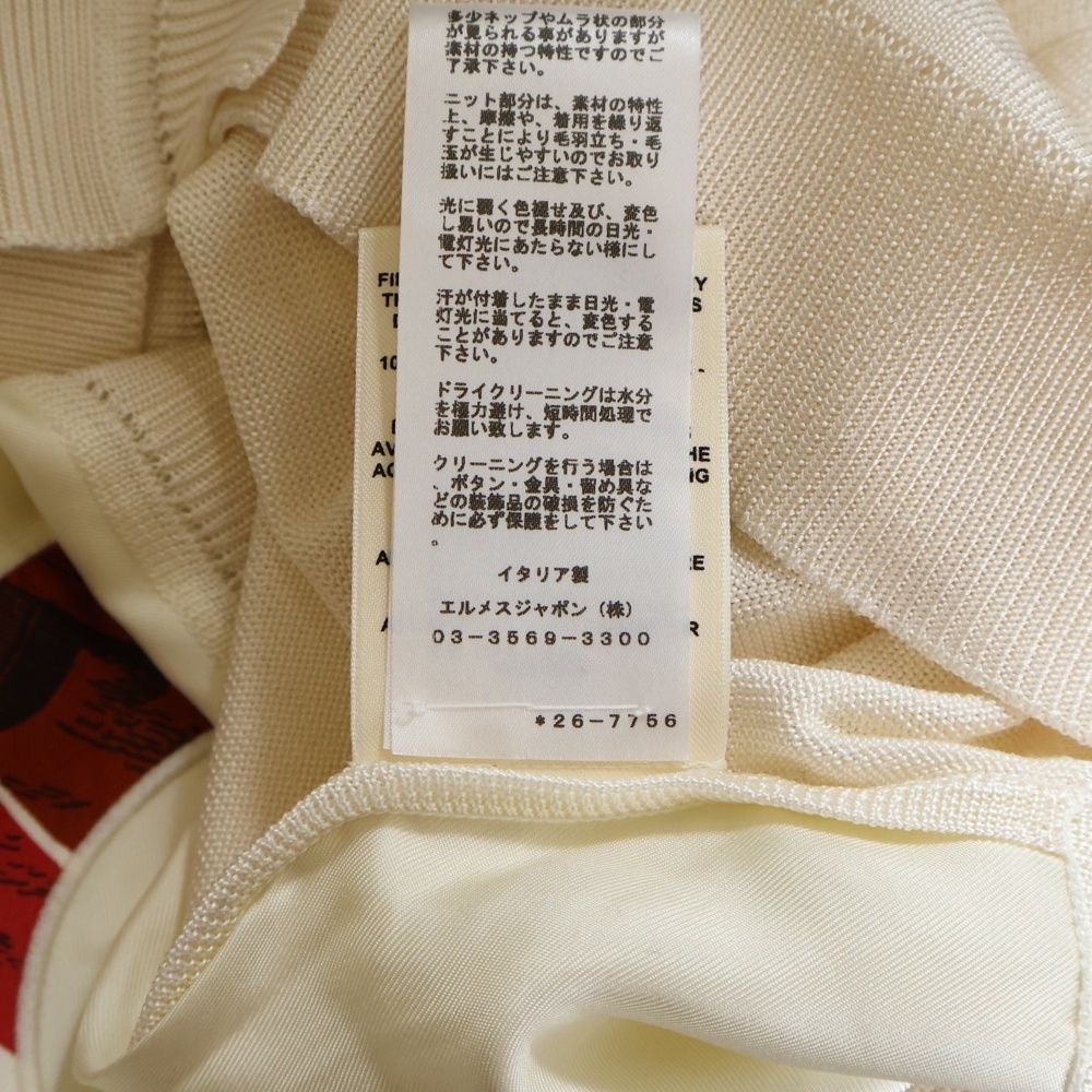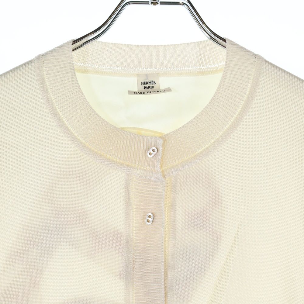 【品名】シェーヌボタン シルク切替バックロゴ刺繍長袖ニットカーディガン ホワイト 26-7756