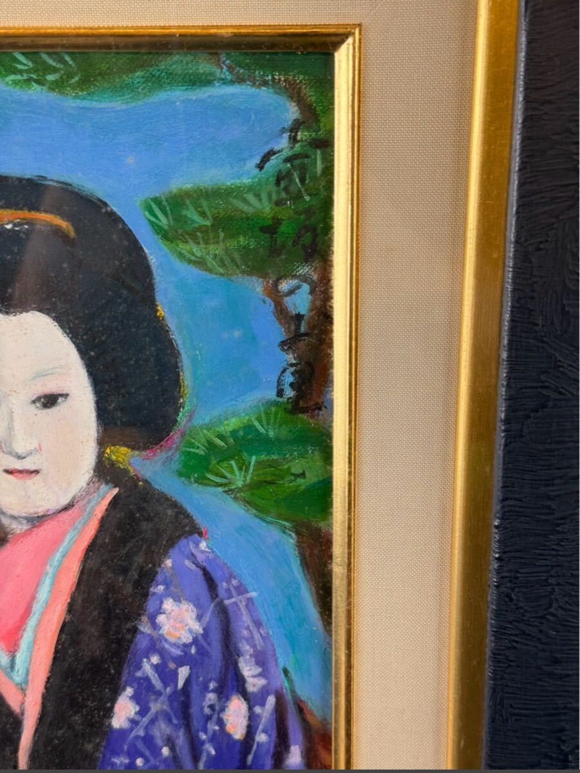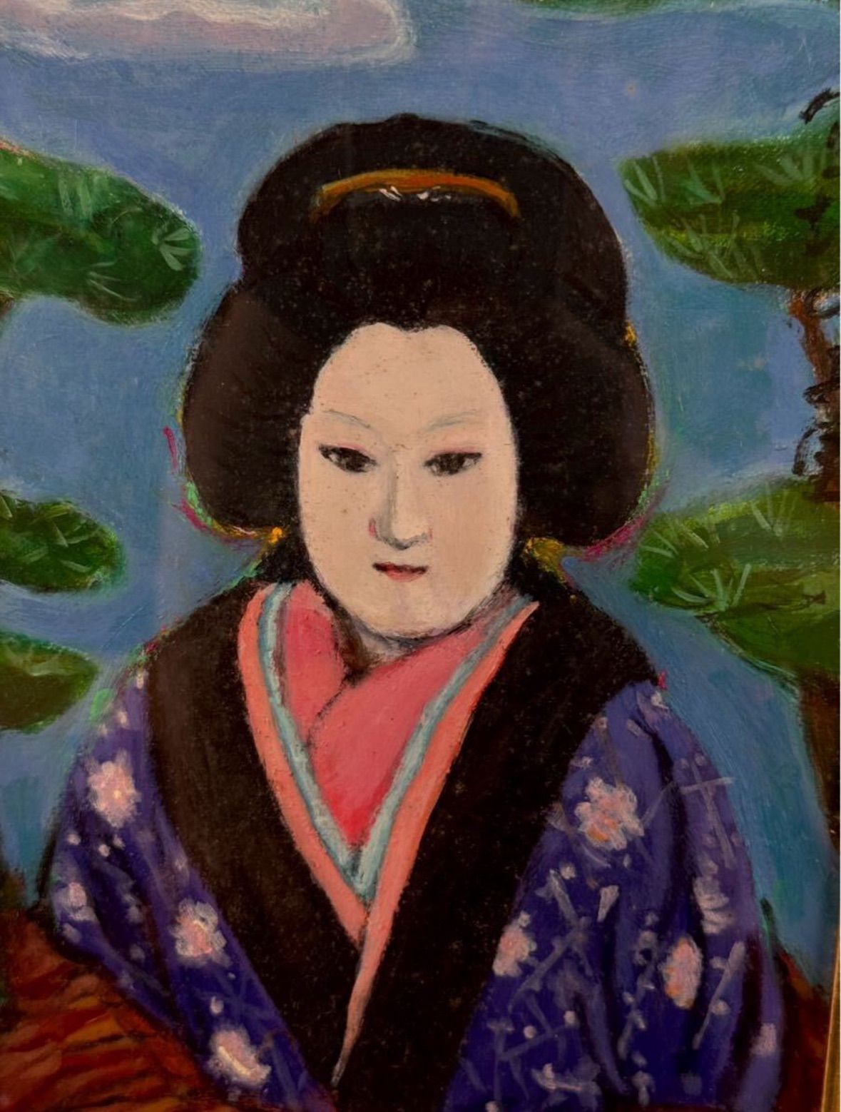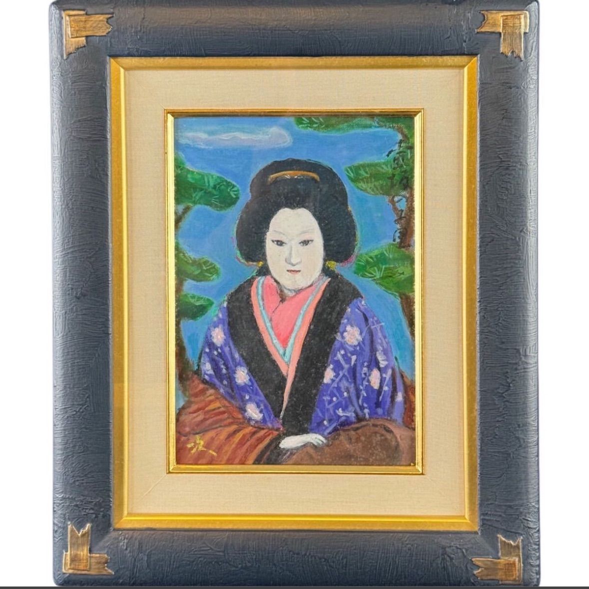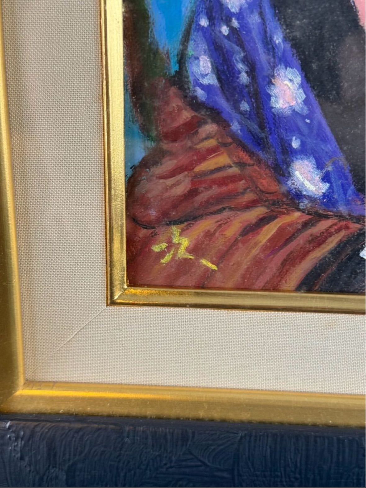 小田次男「文楽かしら お里」油彩 3号 人物画 三越百貨店取扱作品 文楽を題材に制作