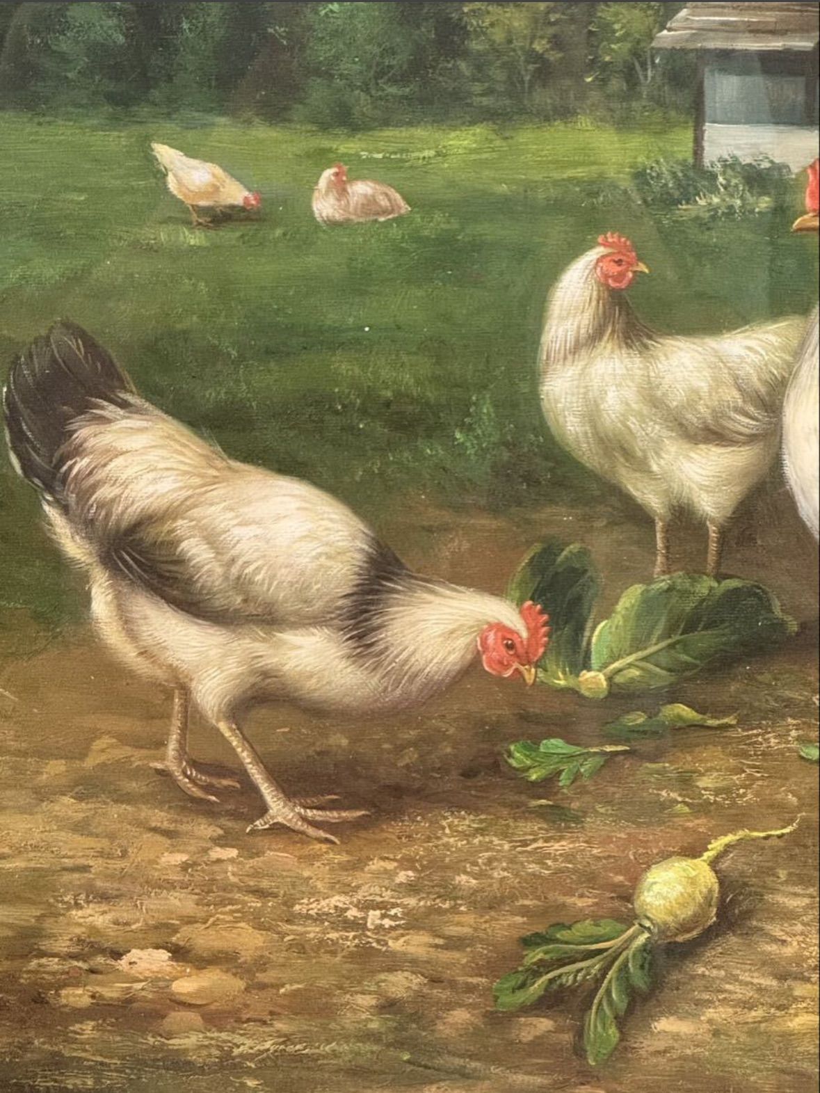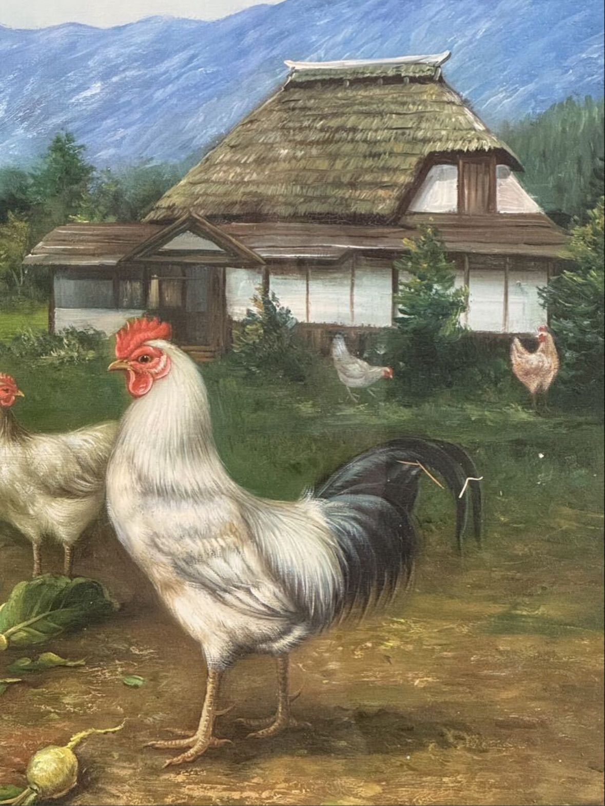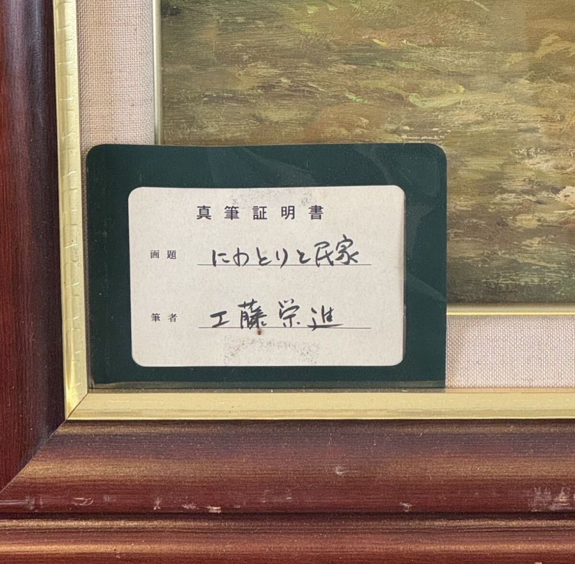 工藤栄進「にわとりと民家」油彩 10号 証明書あり 愛知県出身 八千代会所属 人気実力作家
