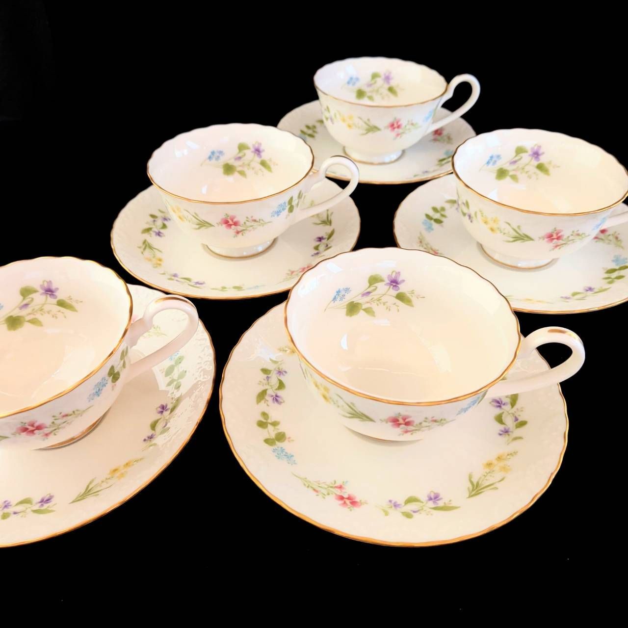 【商品】ノリタケ コンテンポラリー カップ&ソーサ― 花柄 カップ5客 ソーサー5枚