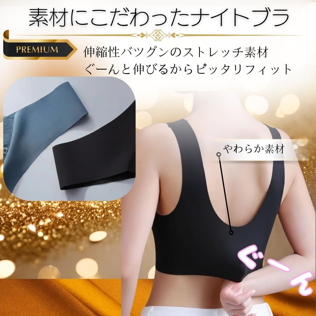 ワイヤレス設計: ノンワイヤーブラジャーで締め付け感がなく、着けていることを忘れるような快適な着心地を実現します昼夜兼用: