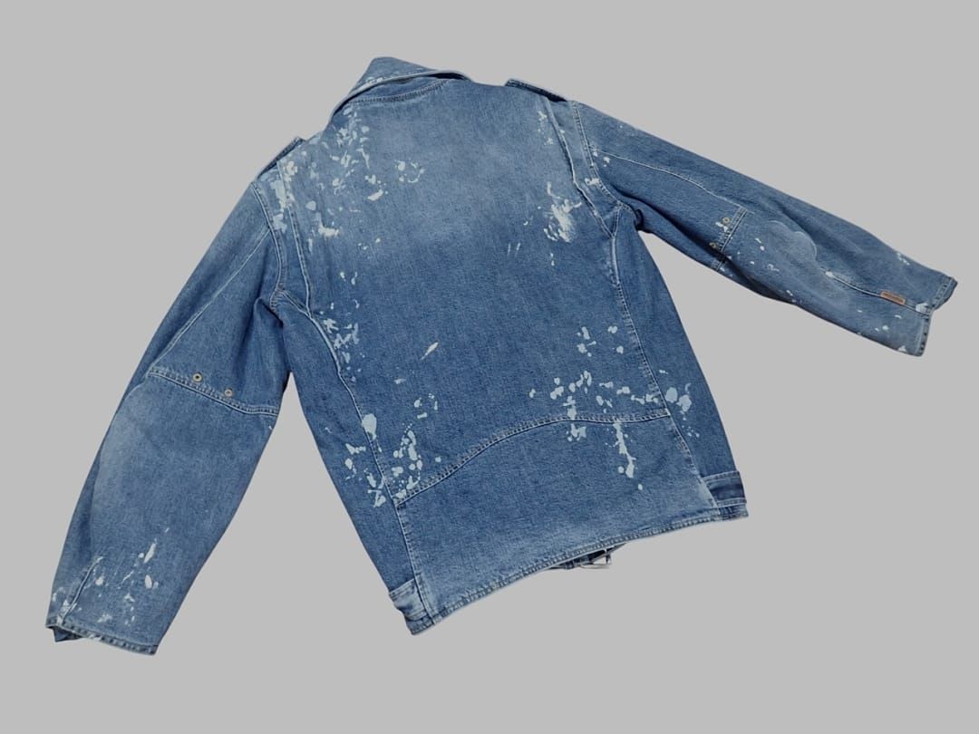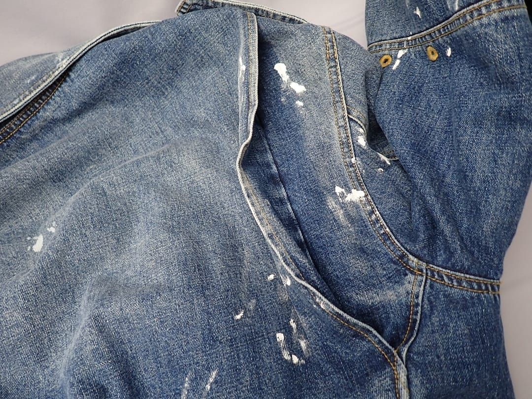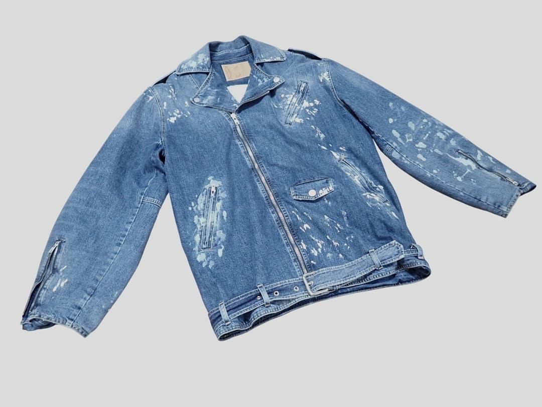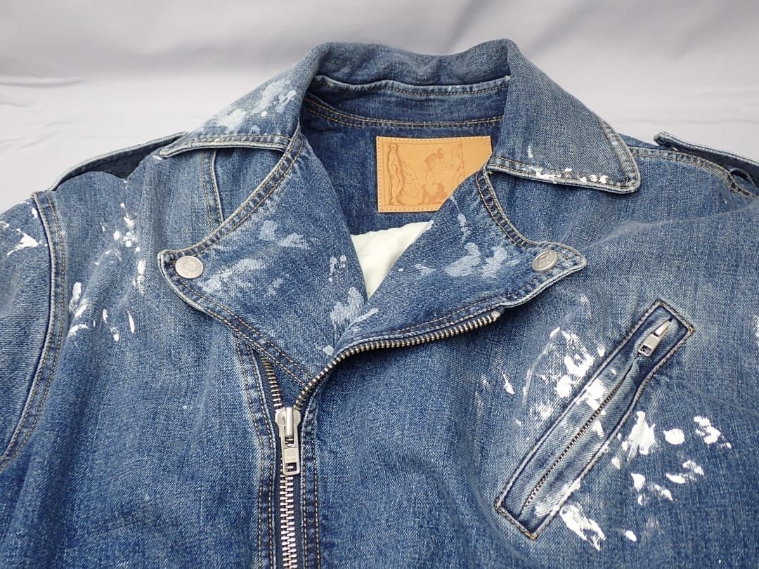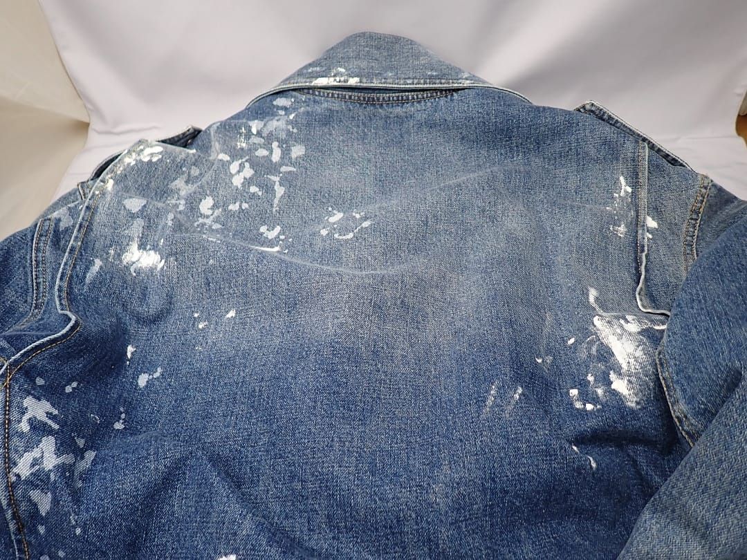 ◆商品名:MARTINE ROSE マーティン ローズ 22SS SUPERSIZED BIKER JACKET デニム ジャケット L オーバーサイズ ペイント キルティング 中古B+ 【送料無料】