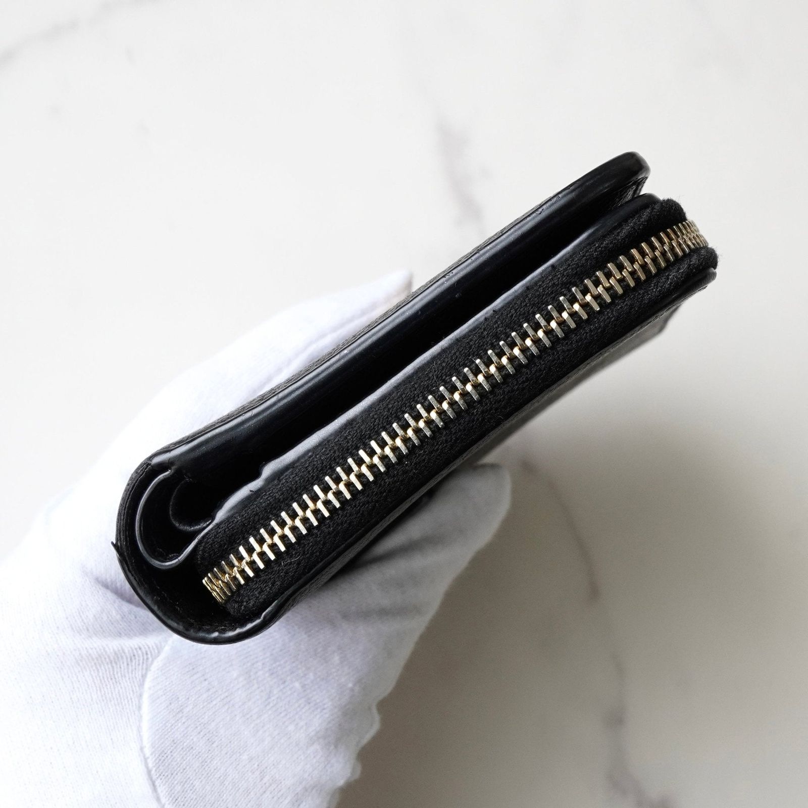 [size]縦:約12cm横:約9cm[material]レザー[condition]・外側【B】備考:レザー部分に色褪せ・型崩れ、ゴールド金具に多少の当て傷、ファスナー部分に若干の毛羽立ちがございます。・内側【B】備考:ー・総評【B】備考:ーS:未使用品・デッドストック品A:使用感がほぼない極美品コンディションAB:僅かな使用感の美品コンディションB:多少の使用感はあるものの大きな汚れやダメージなどのない一般的な中古コンディションC:使用感やダメージや汚れがあるコンディション※気になる点やご不明な点などがござ