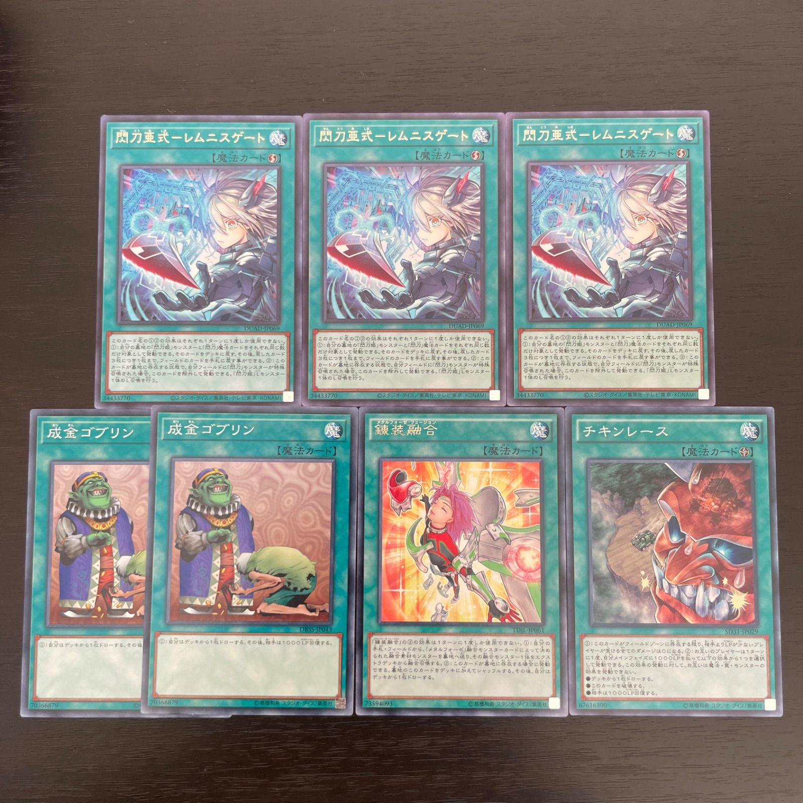 11 遊戯王 閃刀亜式-レムニスゲート レア3枚 成金ゴブリン 2枚 錬装融合 チキンレース 計7枚セット せんとうあしき 閃刀姫