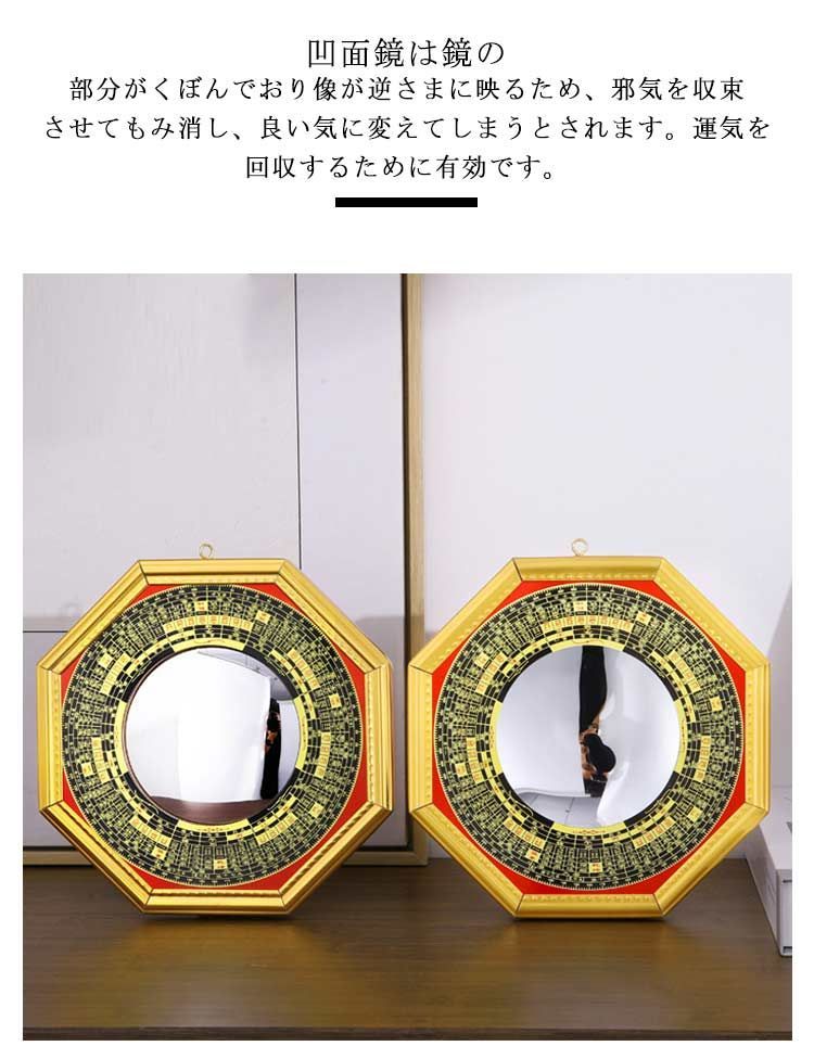 凹面鏡は鏡の部分がくぼんでおり像が逆さまに映るため、邪気を収束させてもみ消し、良い気に変えてしまうとされます。運気を回収するために有効です。