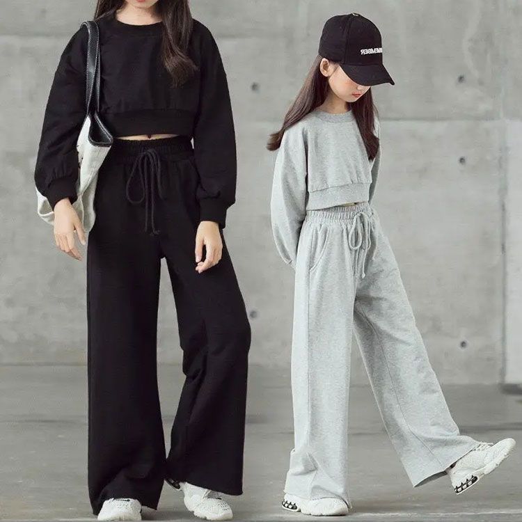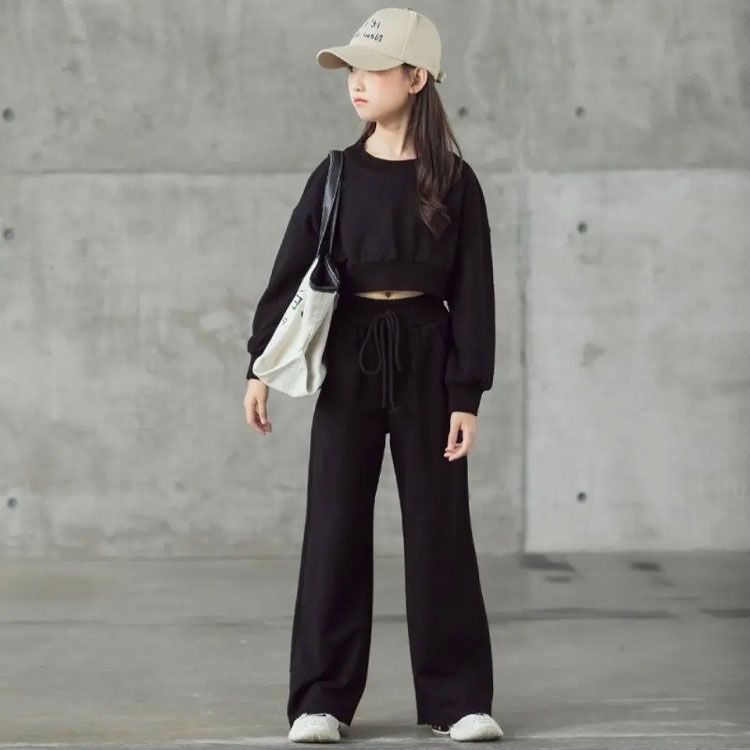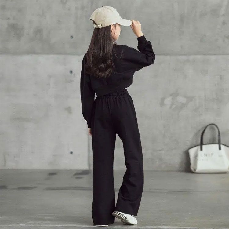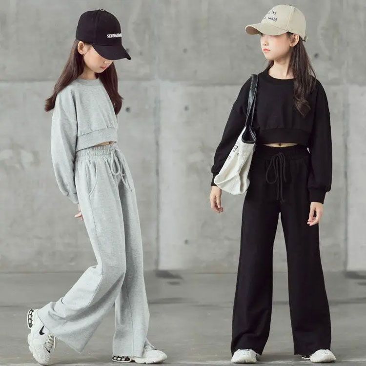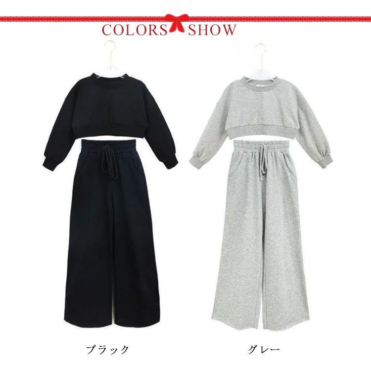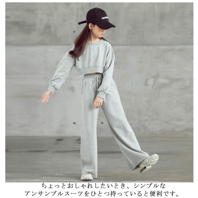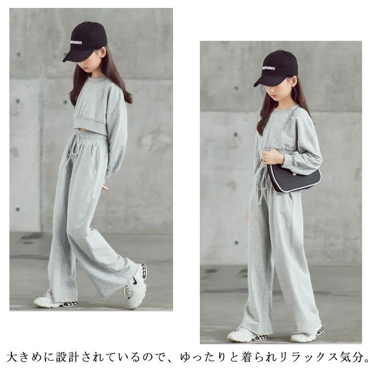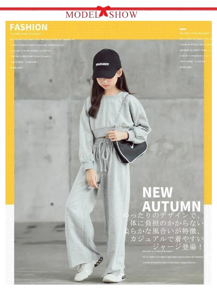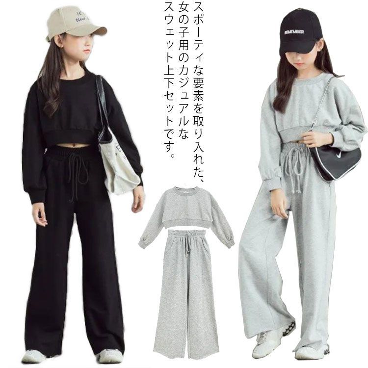 スポーティな要素を取り入れた、女の子用のカジュアルなスウェット上下セットです。