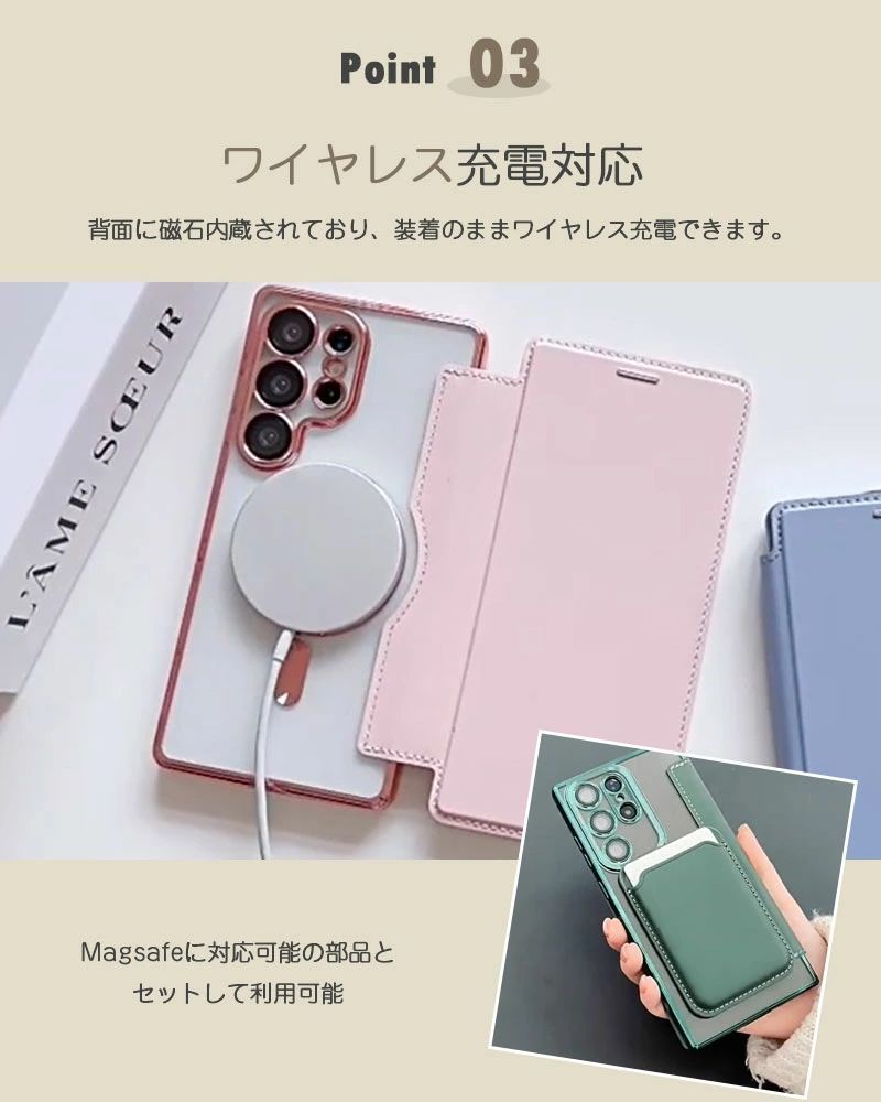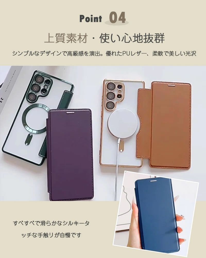 バックパネルにメタルが内蔵されており、ワイヤレス充電器および磁気吸着式モバイルバッテリーやカードケースなど、各種アクセサリーが利用できます。