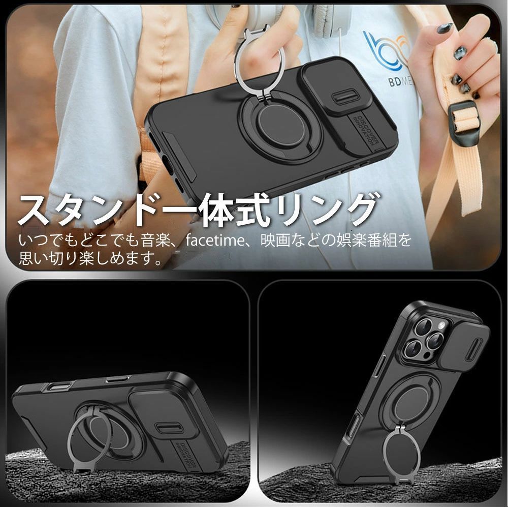 2、ケース背面に、持ちやすく、端末の落下を防止するリングが付いています。リングに指を通すことで片手で持っていても、スマホをしっかりと持つことができます。