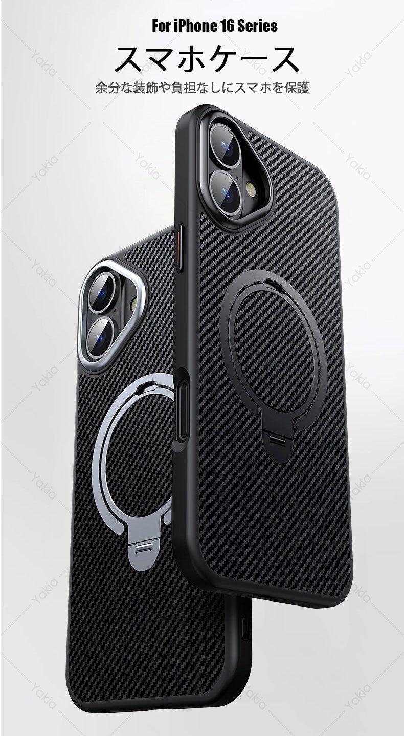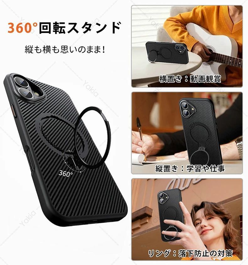 3、背面リング付き、360°回転可能、横置き・縦置きどちらも自由に。落下防止にも役立ちます。