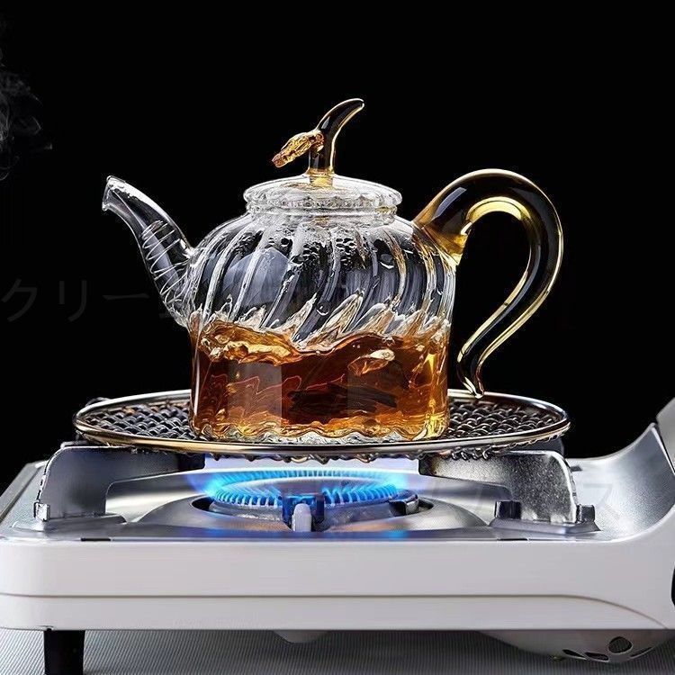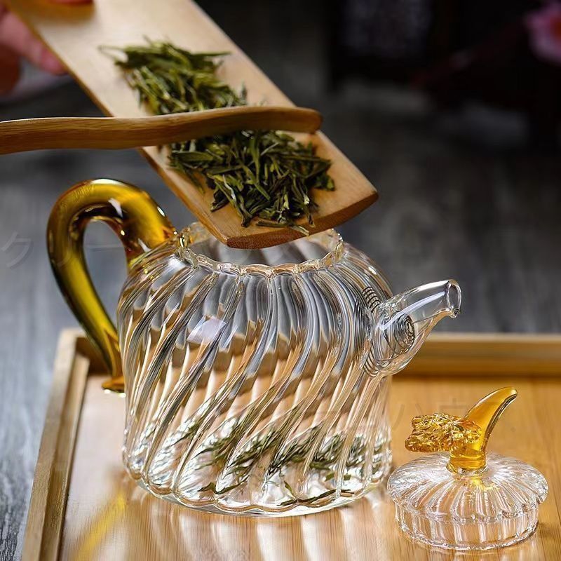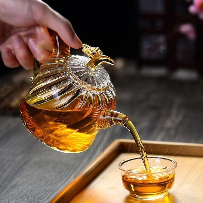 【加熱】お水入れてガスレンジとヒーター加熱可能です。IHコンロは使用不可です。麦茶などを煮出した熱いまま入れても変形したり何かが溶け出したりする心配なく使えます, プラスチックと違ってガラスはお茶の持ち味を保つことができます【素材】耐熱高硼酸ガラスなので、瞬間的な温度変化に耐えられて、温度範囲は-20℃から150℃までです、熱膨張係数3.3、他のガラスよりも熱衝撃に耐性があります。高強度、高硬度、高光透過率を持っています。厚さは約2.90mmと強度が高いので安心、割れにくい。そのため、どんなシーンでも使える丈夫で美しいティーポットです。※紅茶、ハーブティー、工芸茶、花茶、茶道などおすすめ掌サイズのガラスポット。 ※カフェやレストランでも使われています。