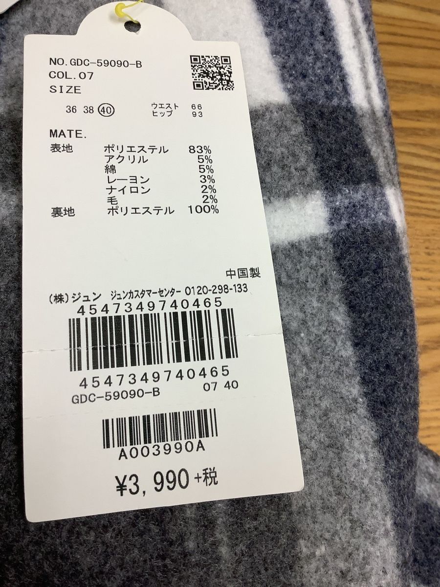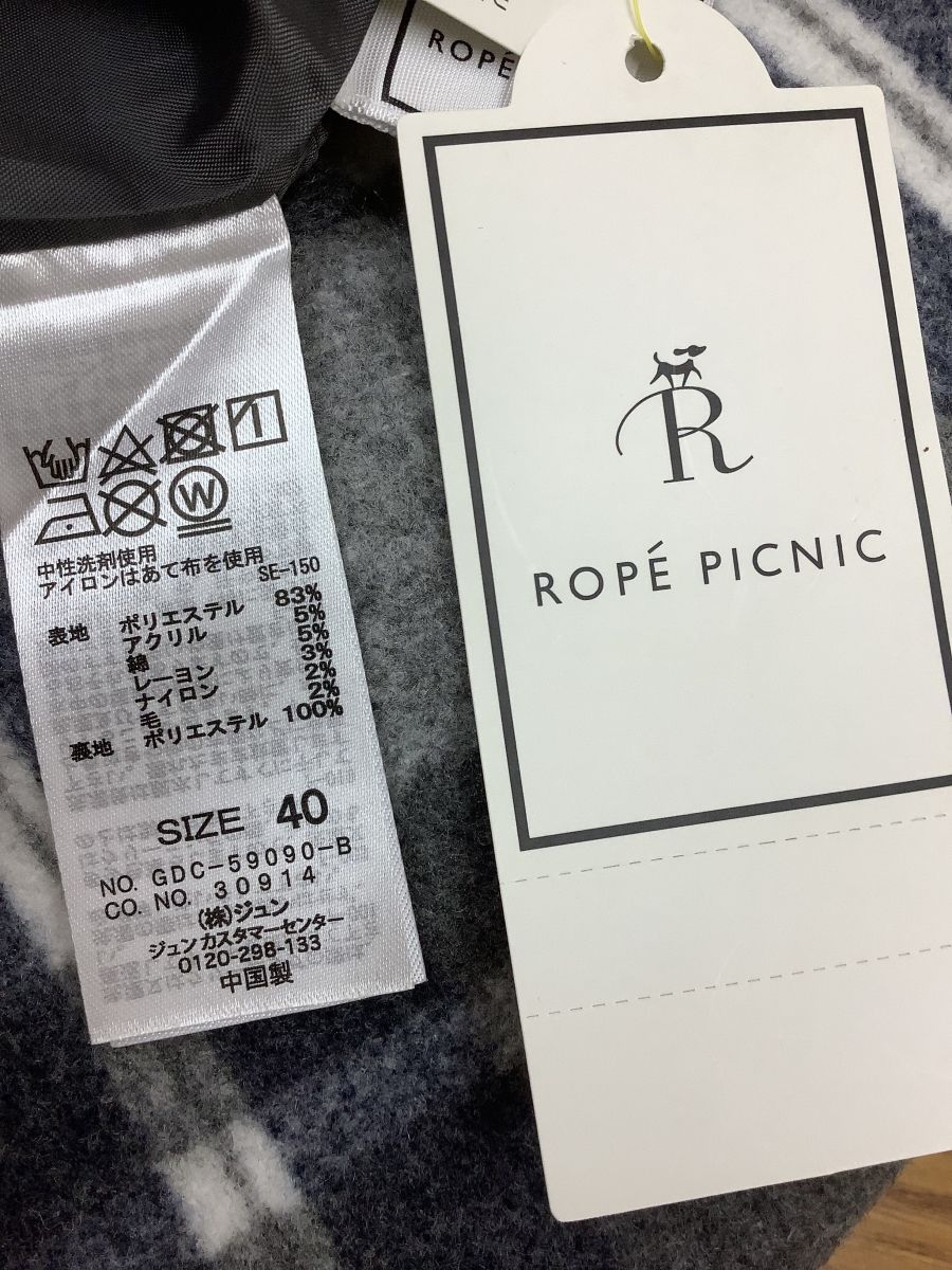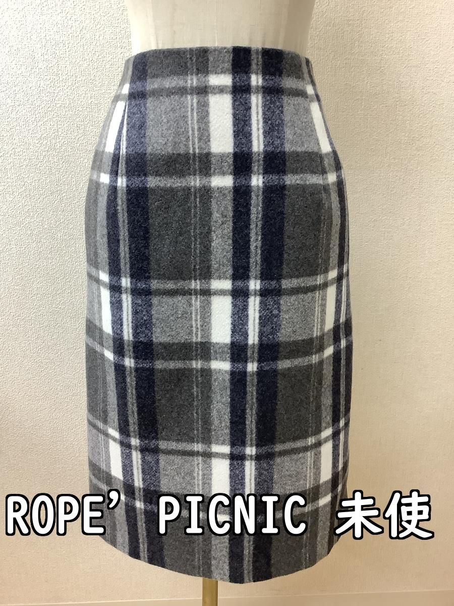 ロペピクニック (ROPE' PICNIC) タグ付き未使用 厚手ウールライク生地スカート グレーチェック サイズ40