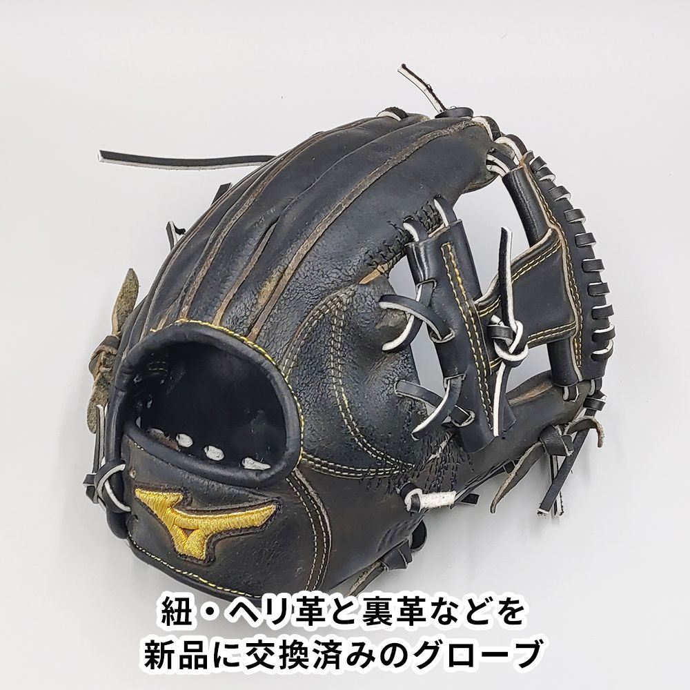 紐とヘリ革をすべて新品時と同色で交換済みです。新品時の色で交換していますので学生野球での使用も可能です。
