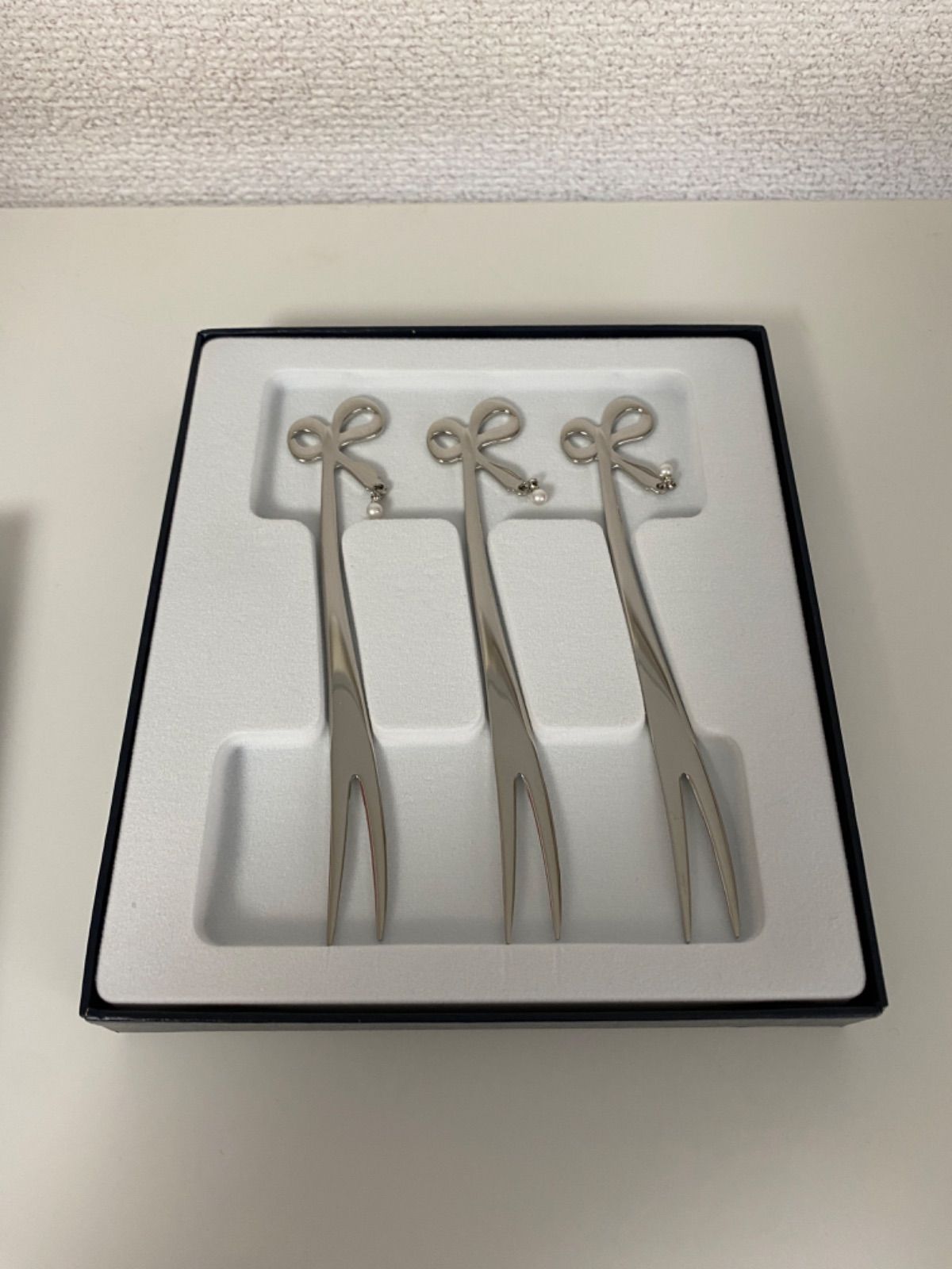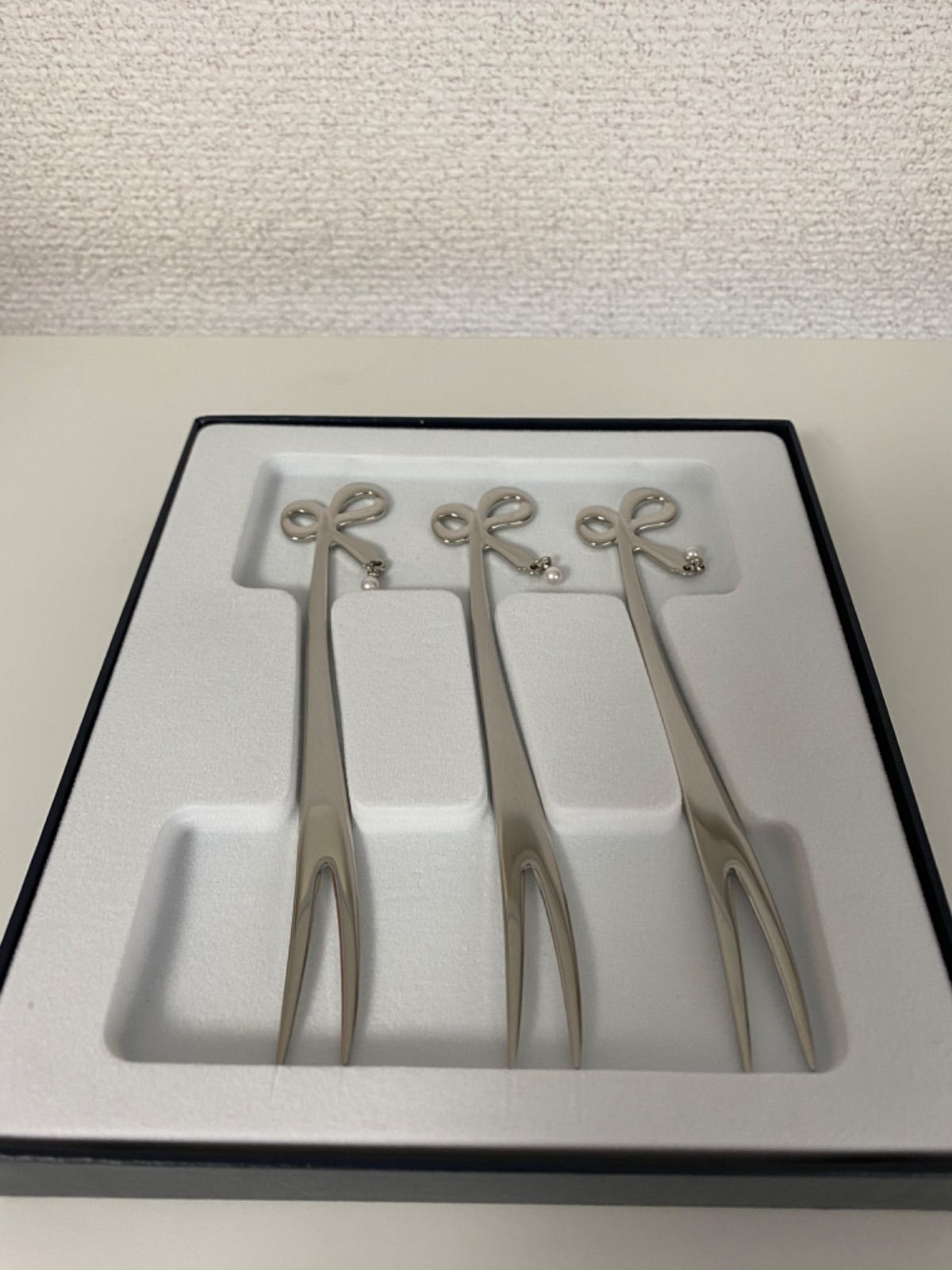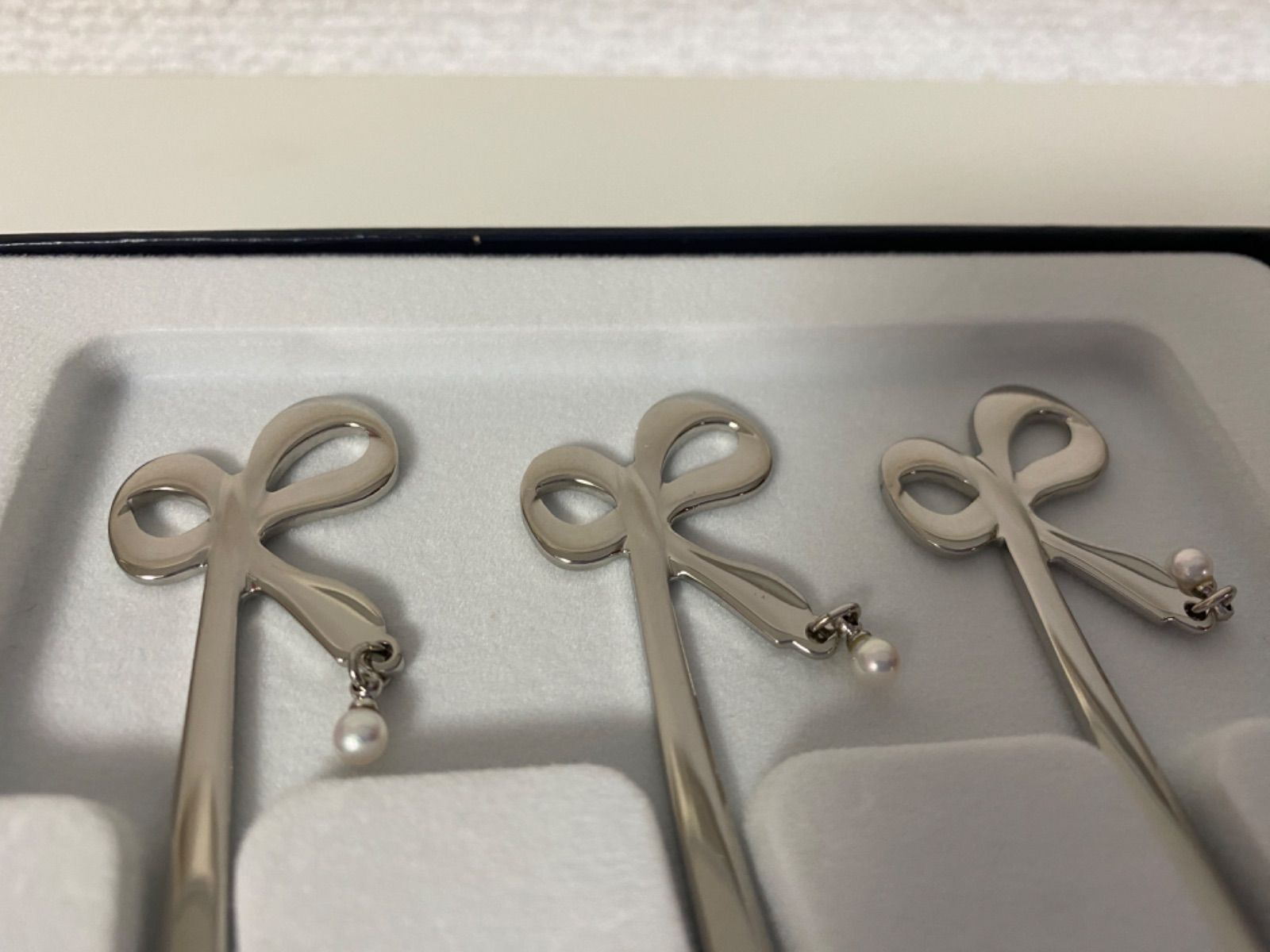 【未使用】ミキモト MIKIMOTO 真珠付き リボン型 フォーク 3本セット