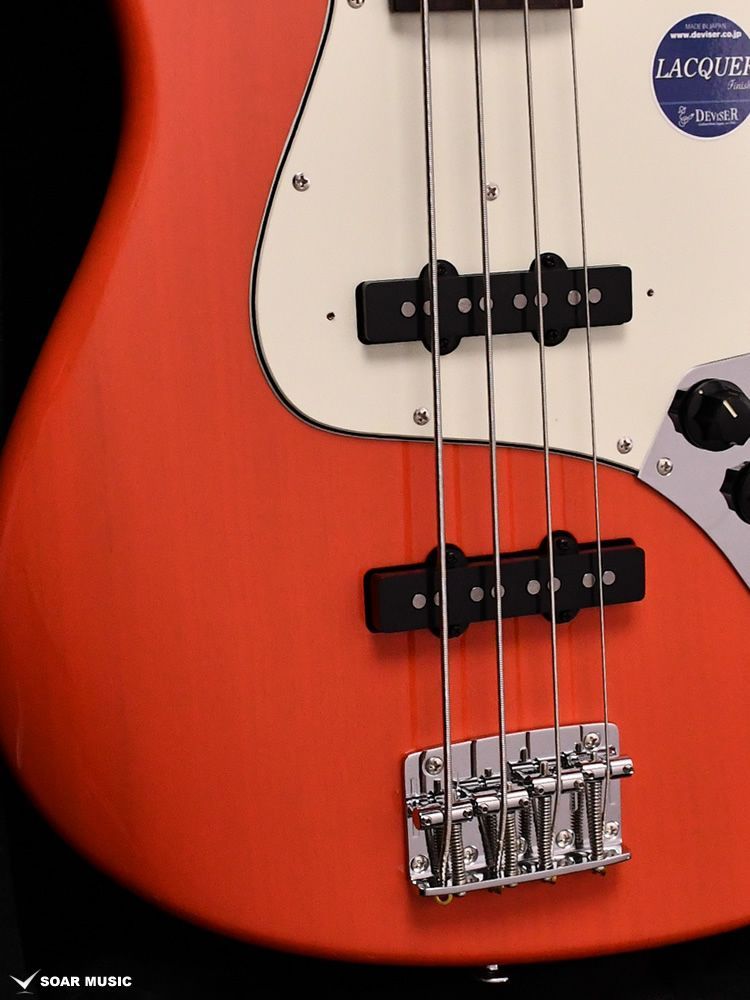 『MJ』モデルは一般的なJBタイプと比べ、高音弦側のホーン部の抉りが大きく取られています。