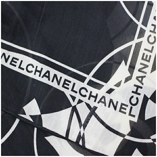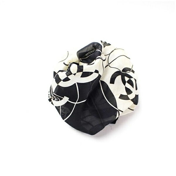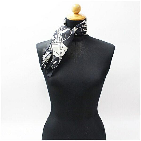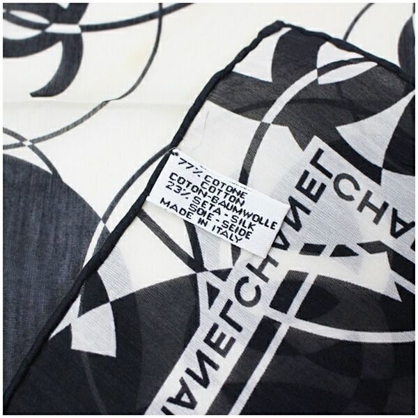 シャネル コットン シルク ミニスカーフ ブラック アイボリー ロゴ 中古