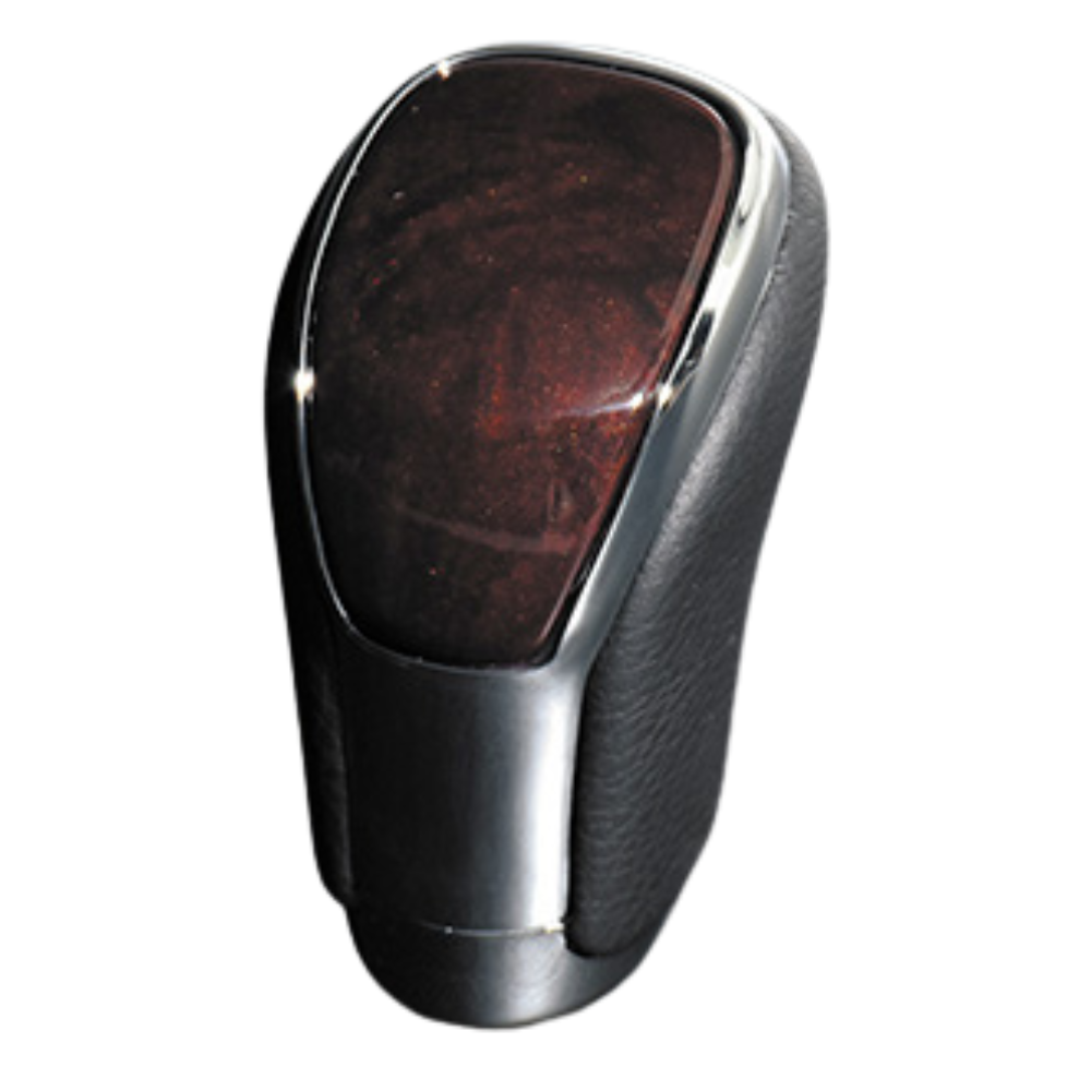 カラードパネルとクロームメッキフレームの融合、そして高級PVCレザーのコンビシフトノブです。